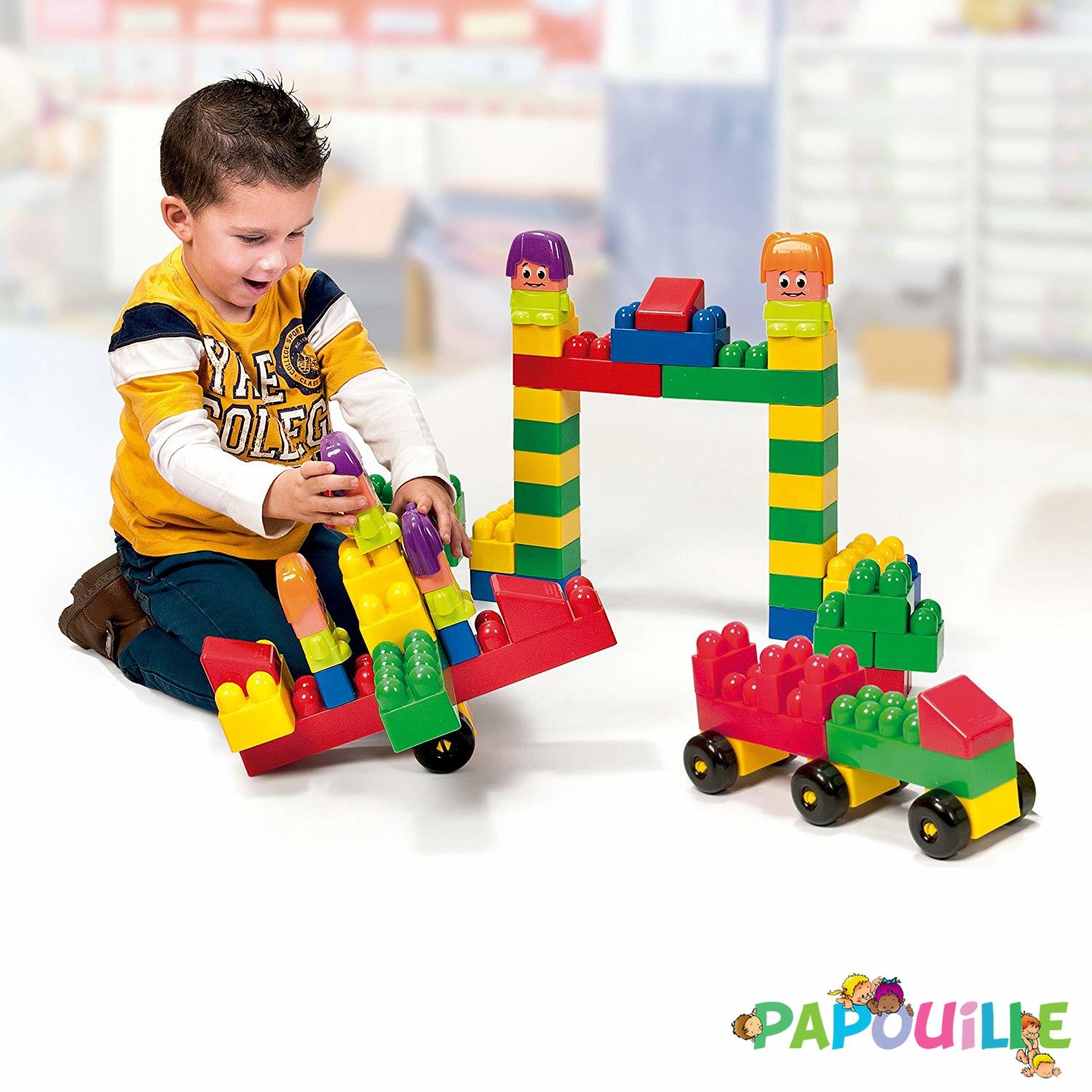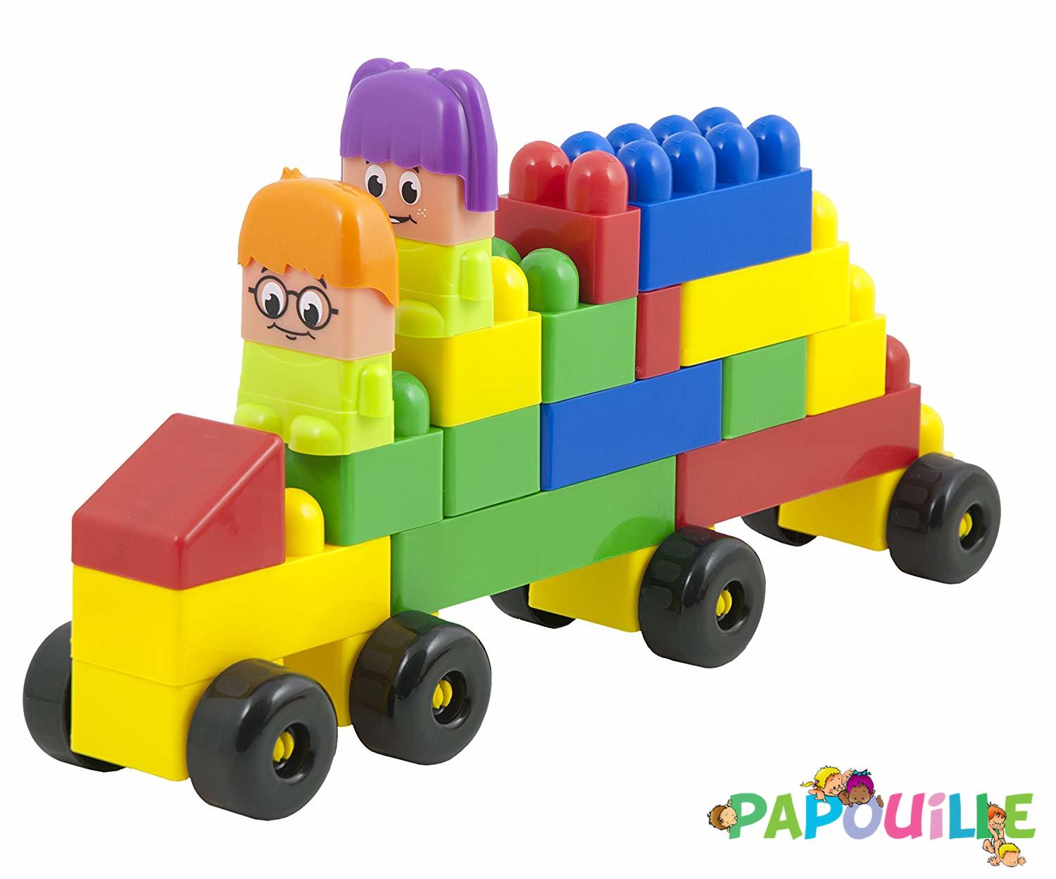 Robuste et résistante, cette boite comprend des roues pour construire des véhicules, des modèles avec têtes et cheveux, pour créer des personnages amusants.