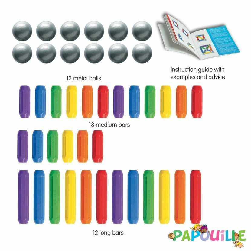 Les bâtonnets peuvent s'attirer comme se repousser, les boules pourront s'aimanter avec tous les bâtonnets.