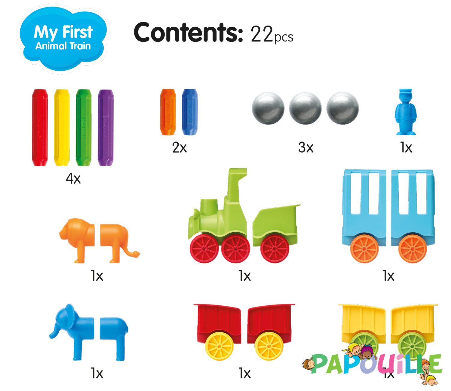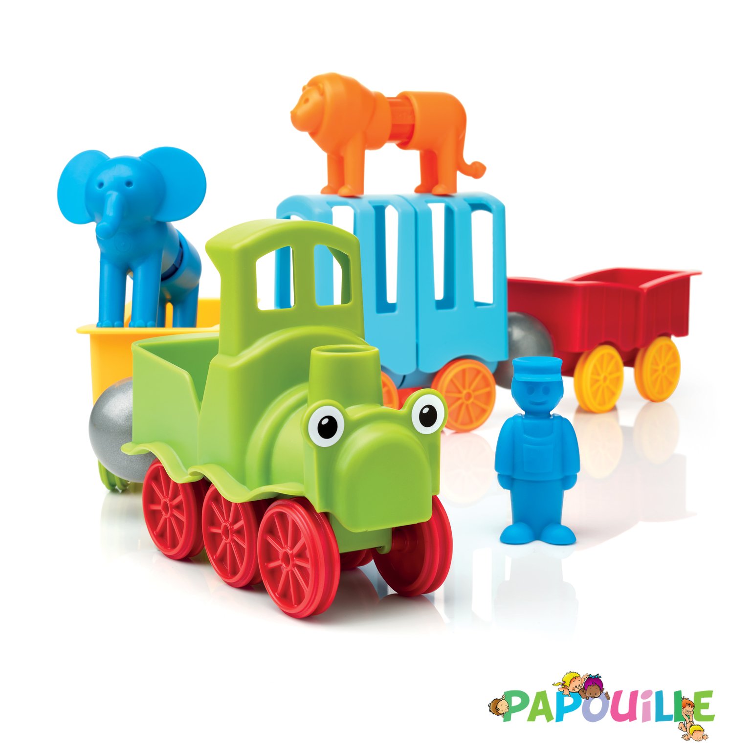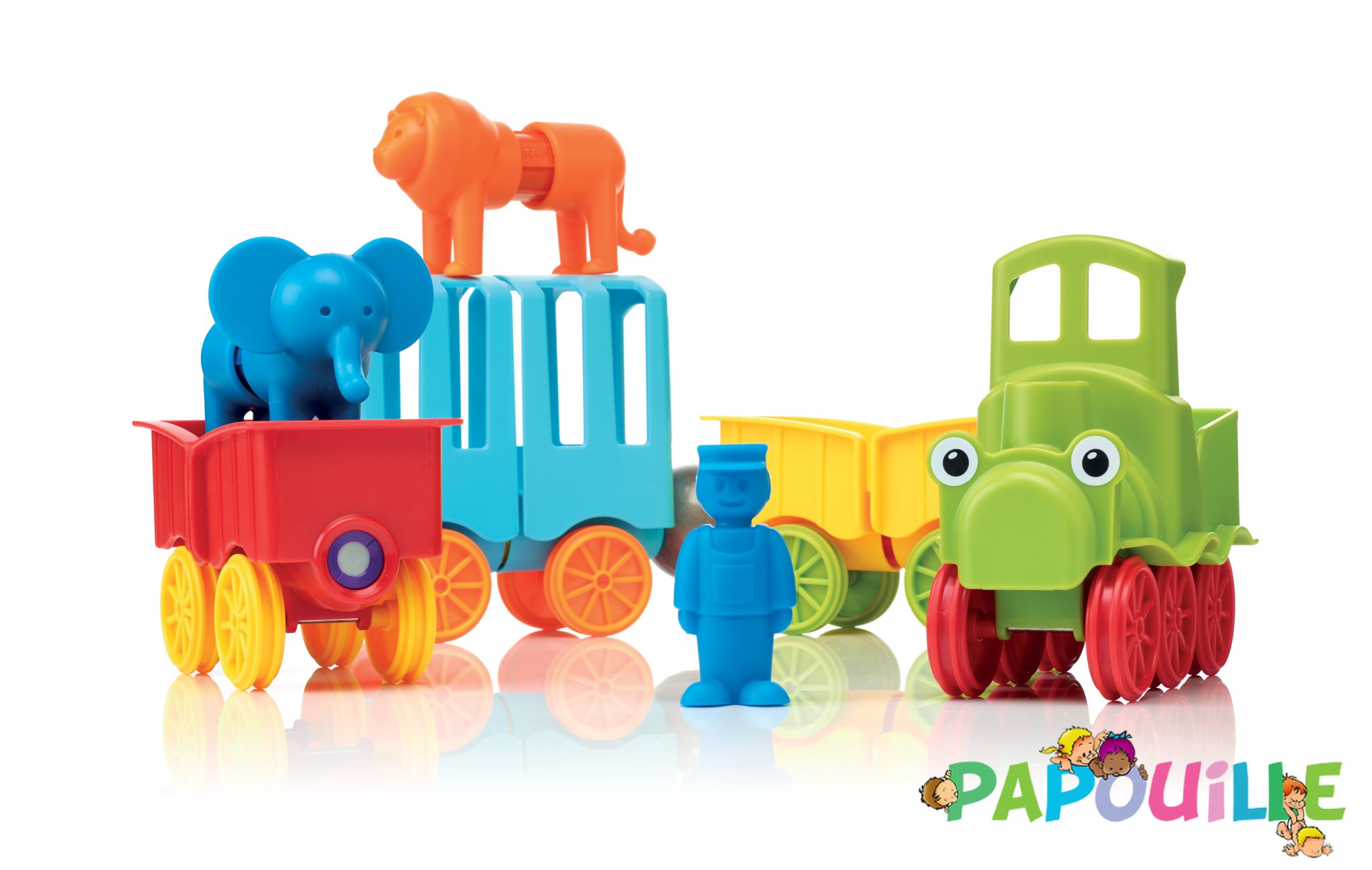 Les formes de grandes tailles des "animaux" et les pièces surdimensionnées du "train" sont très agréables au toucher et s'aimantent très facilement aux bâtonnets.