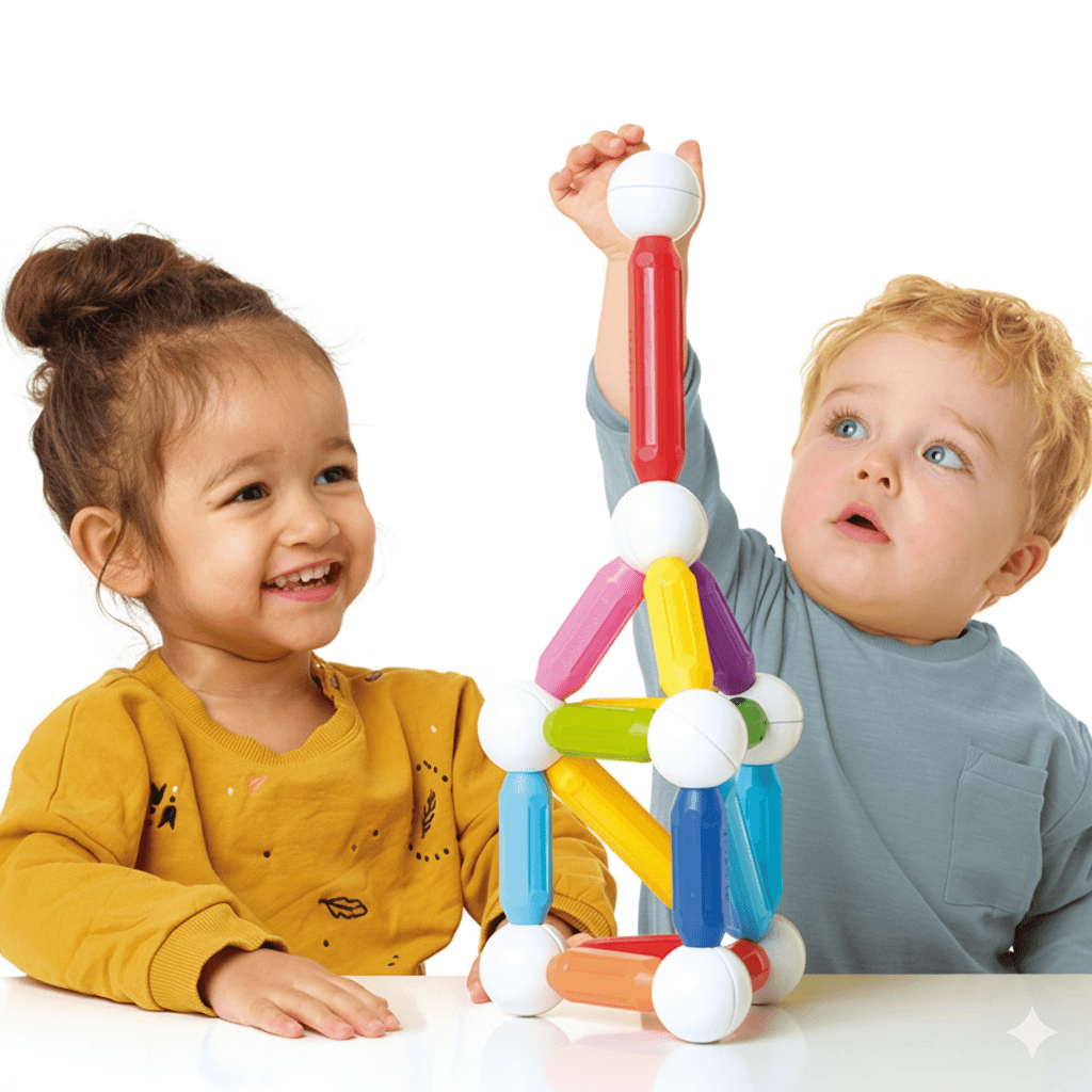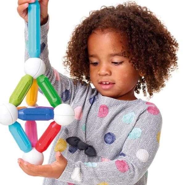 Chaque pièce est conçue pour une prise en main facile par les jeunes enfants. Ce jeu est idéal pour favoriser la coordination œil-main, la motricité fine, et la découverte des notions de polarité.