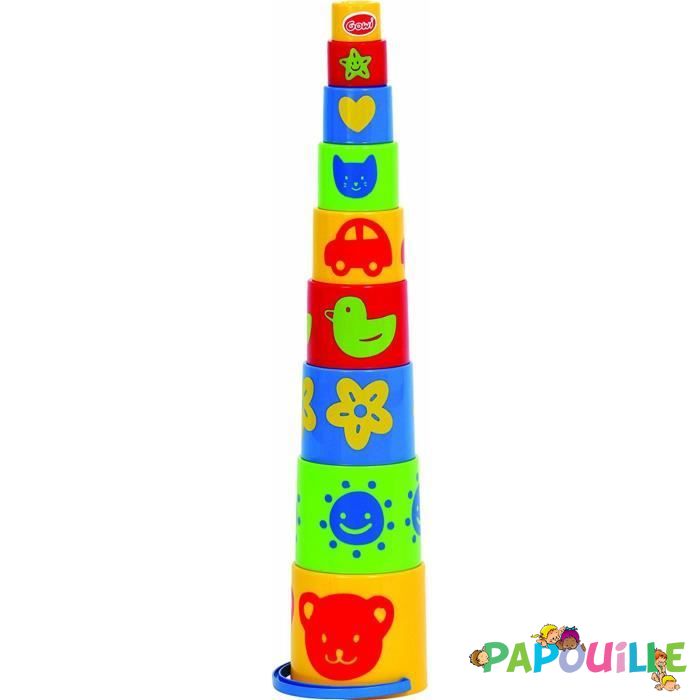 Fabriqués en plastique robuste et sécurisé, ces gobelets peuvent être empilés les uns sur les autres pour former une tour colorée de 50 cm de haut, encourageant ainsi l’apprentissage des notions de taille, d'équilibre et d'organisation spatiale.