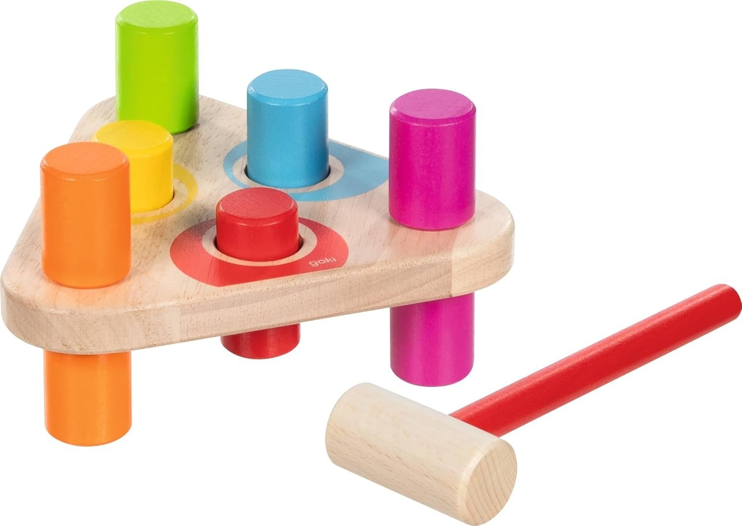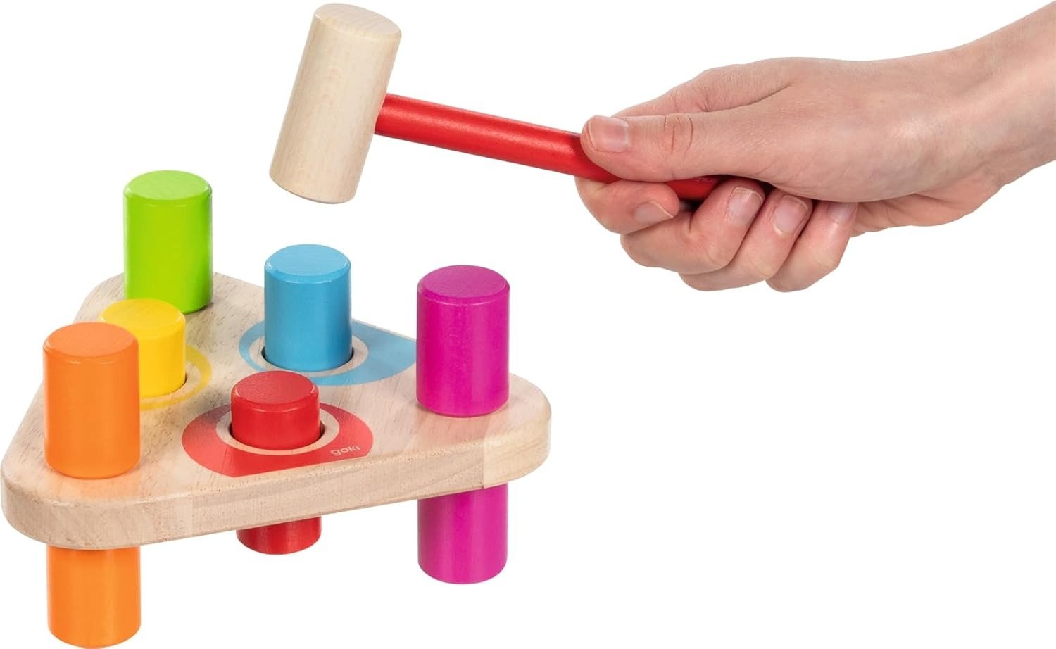 Le banc à marteler arc-en-ciel en bois est un jouet éducatif et ludique parfait pour les enfants dès 2 ans. Fabriqué en Allemagne avec des matériaux de haute qualité, ce jouet robuste est idéal pour développer la motricité fine, la coordination œil-main et la concentration des tout-petits. Grâce à ses blocs de bois colorés, ce banc à marteler encourage également la reconnaissance des couleurs et la dextérité. Son design triangulaire unique et épuré le rend attrayant pour les enfants tout en étant facile à manipuler. Le marteau, conçu spécialement pour les petites mains, permet aux enfants de s'amuser à frapper les blocs de bois, tout en favorisant leur sens de la précision et leur force musculaire.