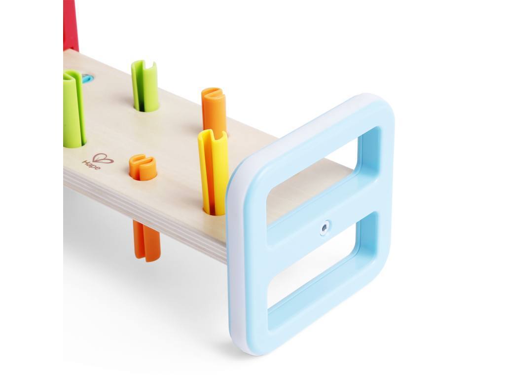 Compter les coups : Les enfants peuvent compter le nombre de coups nécessaires pour enfoncer chaque cheville, favorisant ainsi le développement de compétences mathématiques de base.
