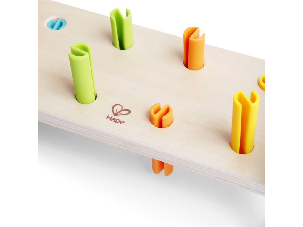 Apprentissage des couleurs : Encouragez les petits à nommer les couleurs de chaque cheville, aidant ainsi à développer leur vocabulaire et leur reconnaissance des couleurs.