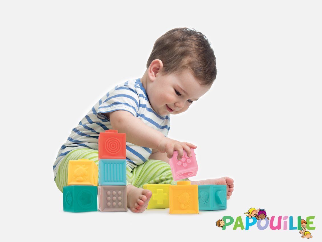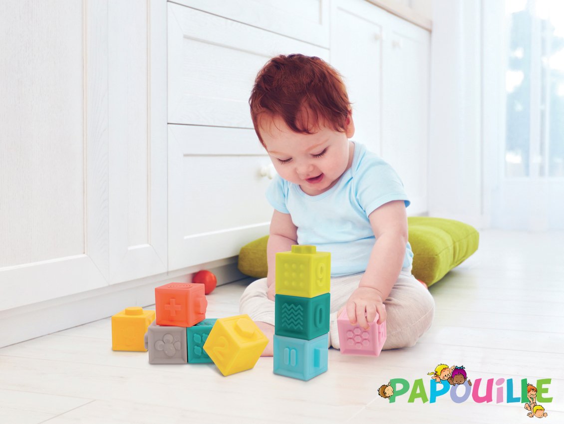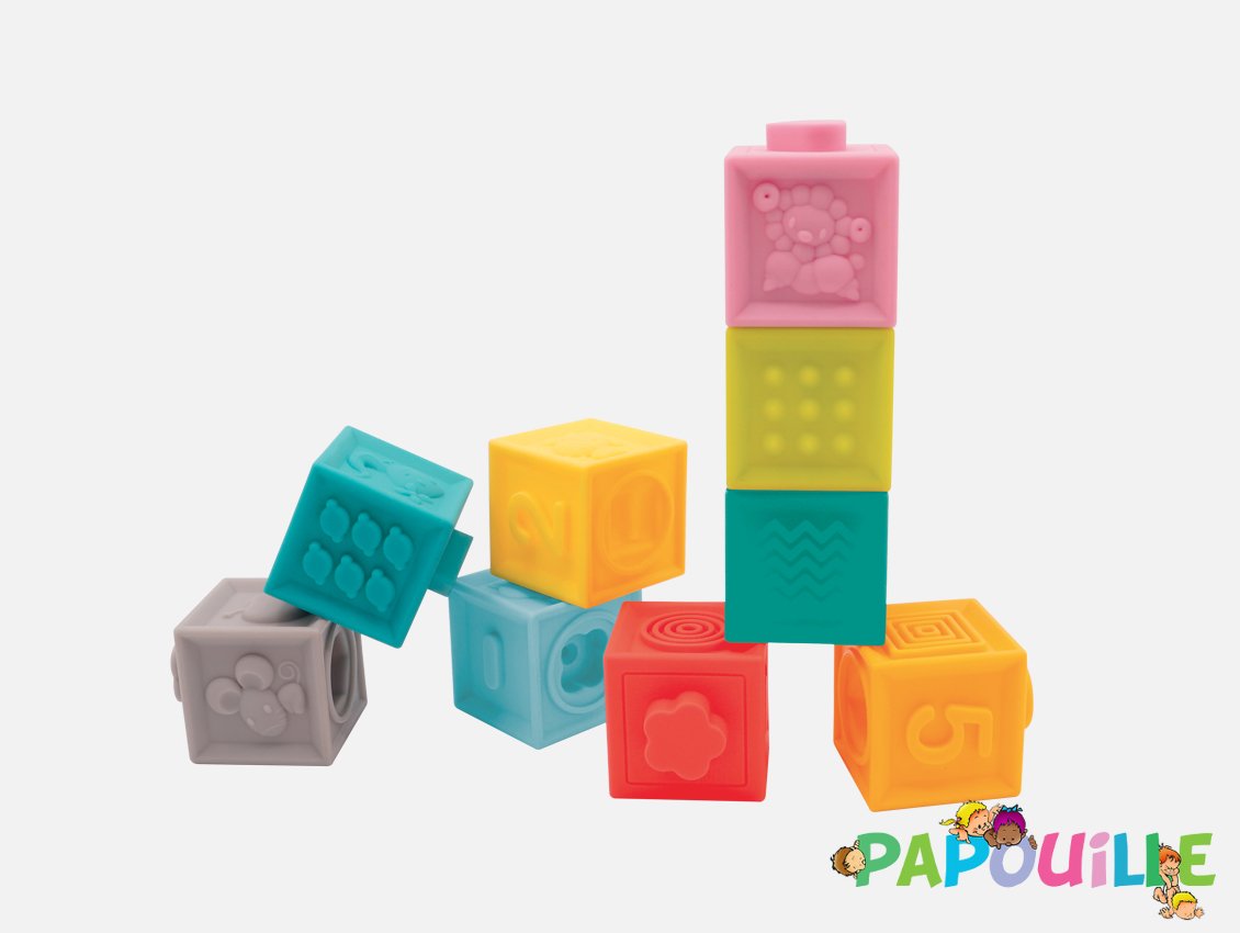 - Cubes souples emboîtables texturés et colorés lot de 9