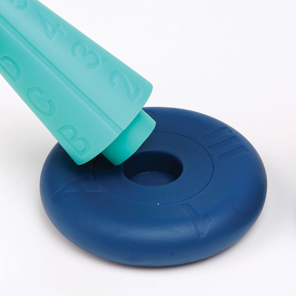 La tige centrale est en forme de cône. Cette particularité guide les enfants à classer les anneaux du plus grand au plus petit pour pouvoir tout empiler. L’esprit de logique est sollicité !