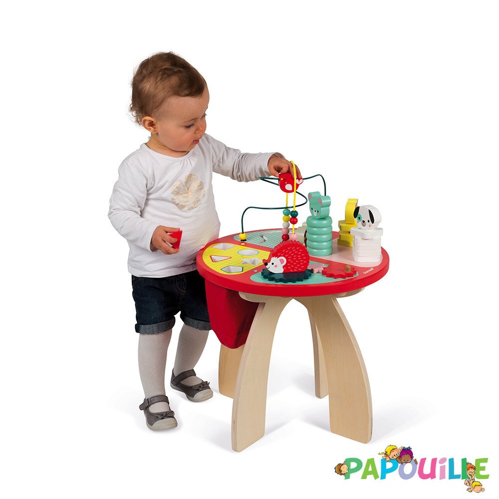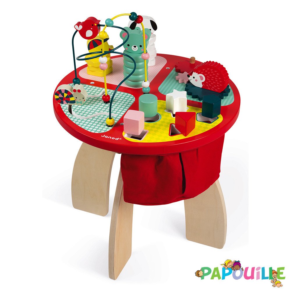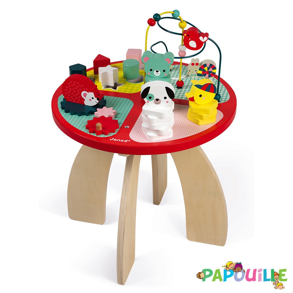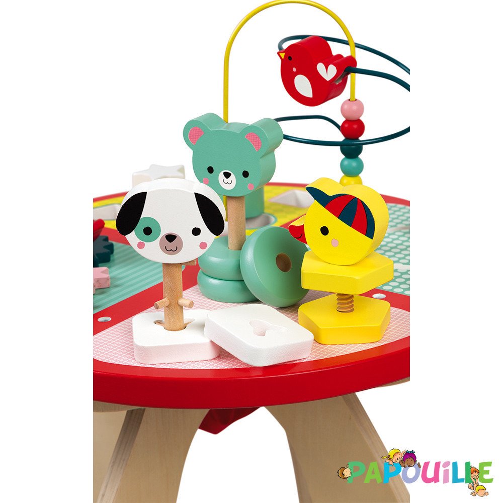 La table multi-activités haute en couleurs et en distractions avec 4 aires de jeux, les enfants en crèche pourront jouer ensemble autour de la table.