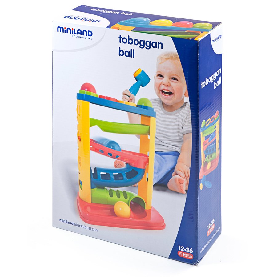 Ce joli toboggan à balles en bois est un incontournable des espaces de jeux pour tout enfant à partir de 1 an. Grâce à son design coloré et ludique, il attire immédiatement l’attention et stimule la curiosité des tout-petits. Le principe est simple et captivant : à l’aide du marteau adapté à leurs petites mains, les enfants tapent sur les balles pour les faire dévaler les 4 rampes du circuit, dans une joyeuse succession de descentes !