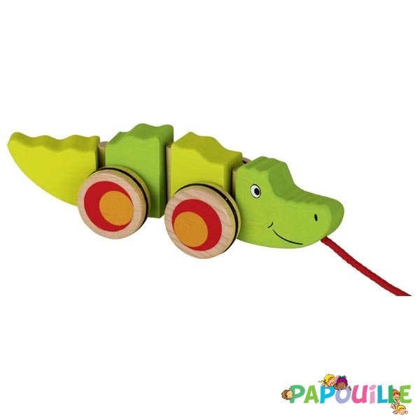 Animal à tirer en bois crocodile