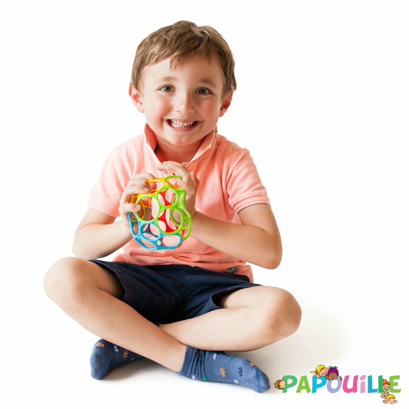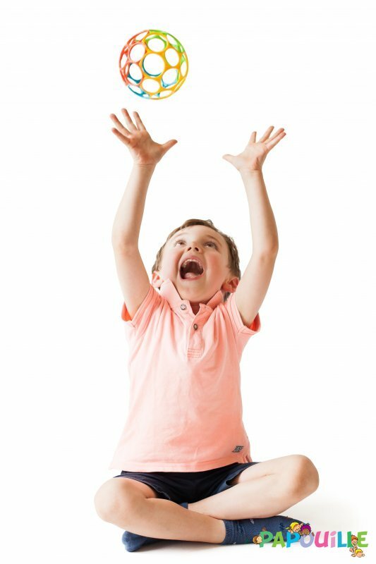 Veuillez noter que les coloris peuvent varier selon les arrivages, ajoutant une touche de surprise à chaque nouvelle balle. C'est une invitation à l'exploration visuelle et tactile pour les enfants de 6 mois et plus.