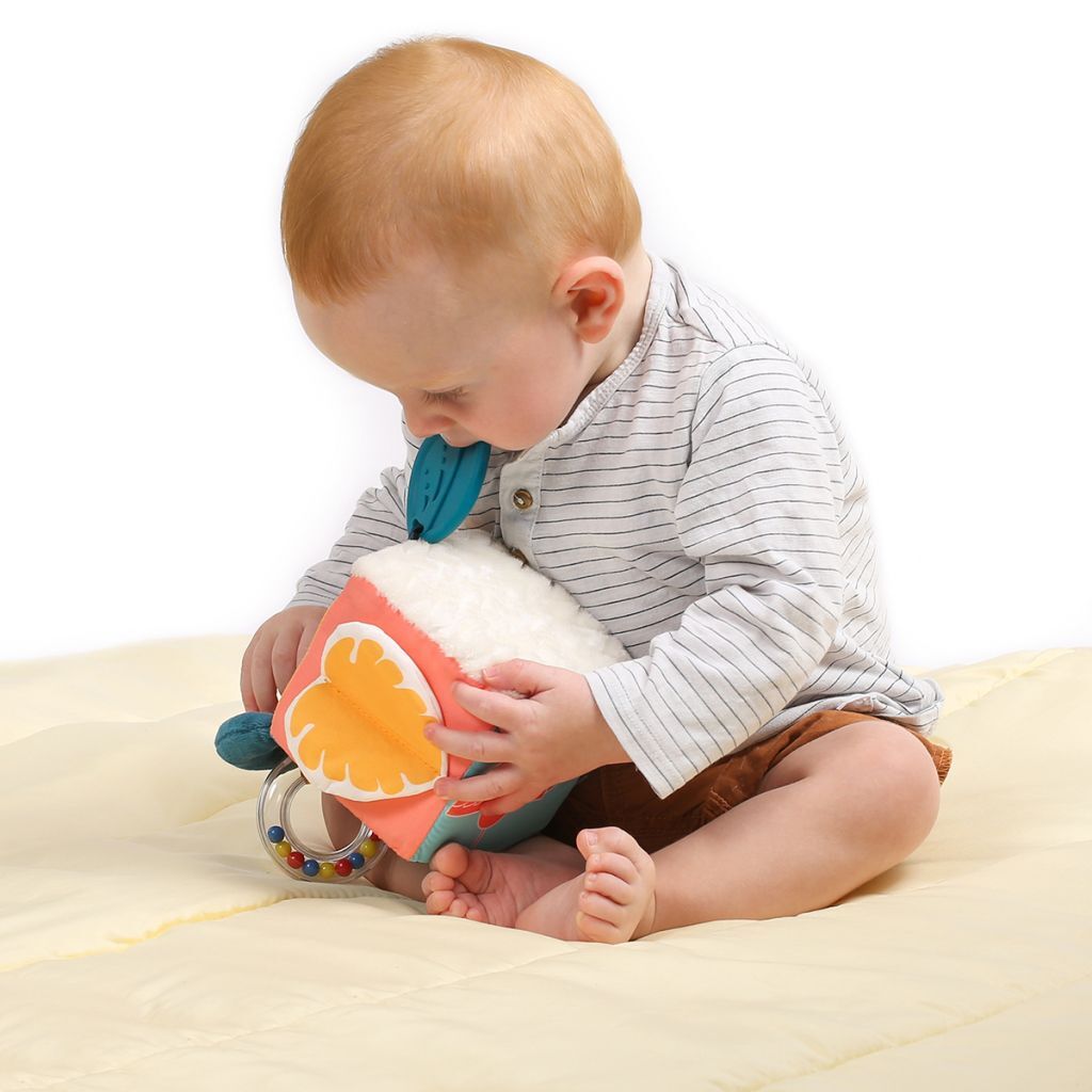 Ce jouet sensoriel de manipulation est parfaitement adapté pour faciliter la prise en main et stimule les sens de bébé. Il développe la dextérité et la coordination des mouvements de l’enfant. Le cube d’éveil deviendra rapidement un compagnon fidèle à la maison et pendant les déplacements de la famille !