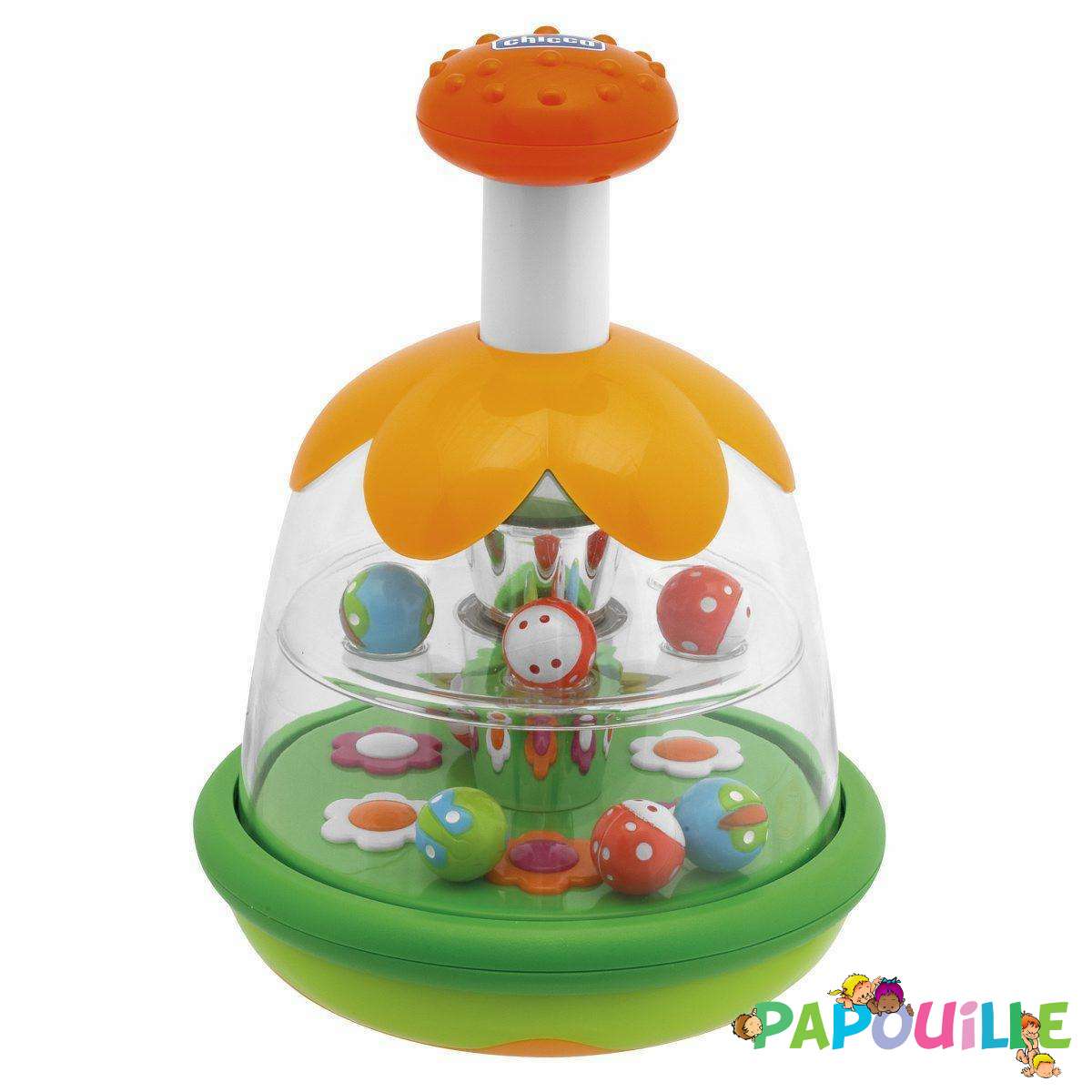 Une simple pression suffit pour déclencher la toupie et observer le jeu captivant des petites boules en mouvement qui permet à l’enfant de comprendre la relation de cause à effet.