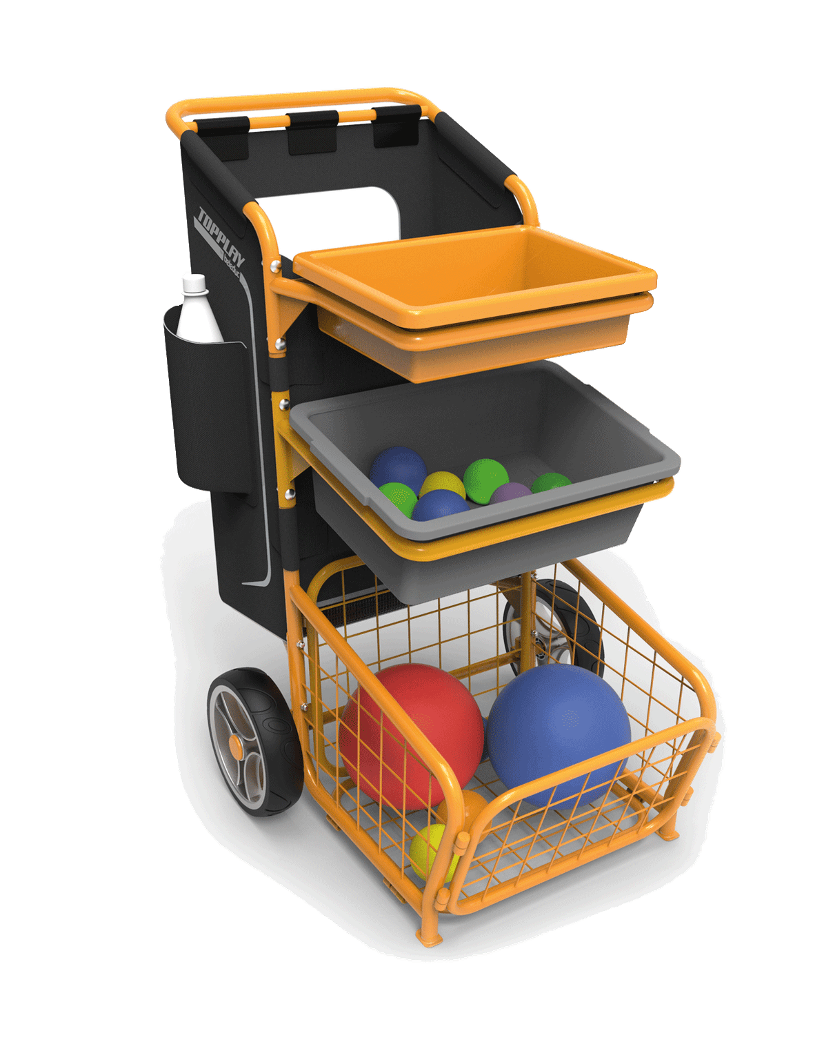 Ses plateaux de transport amovibles facilitent l'organisation et permettent une flexibilité maximale. Grâce à sa construction robuste, il reste stable même en mouvement et peut être utilisé sur divers terrains. Sa conception ergonomique le rend simple à manipuler, même par les enfants.