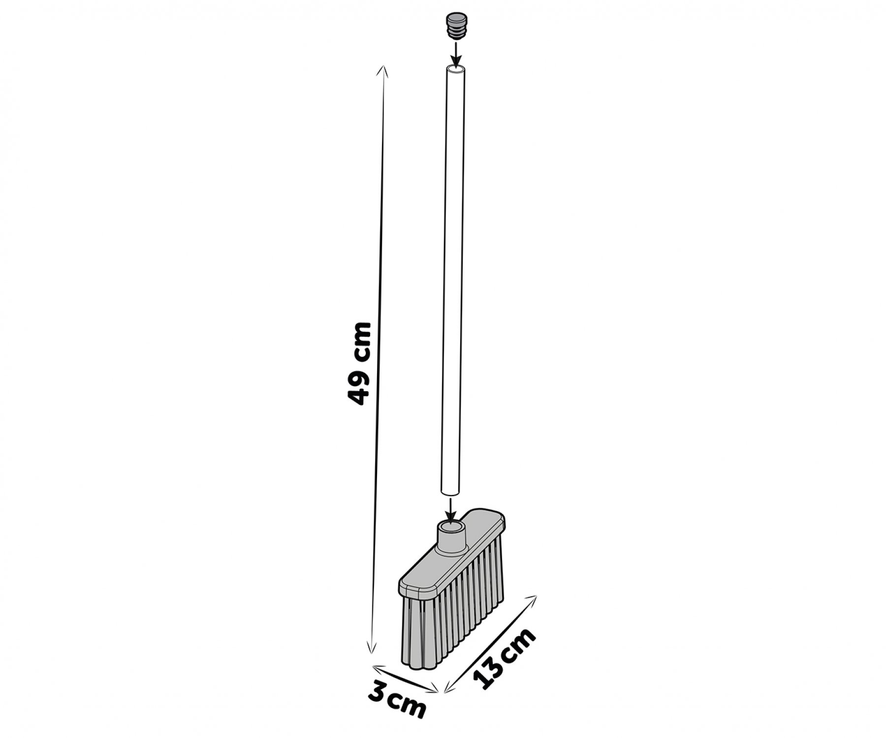 Dimensions du balai : L 49 x l 3 x P 13 cm