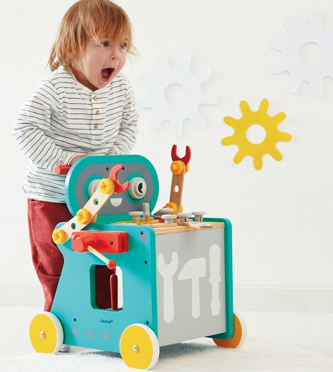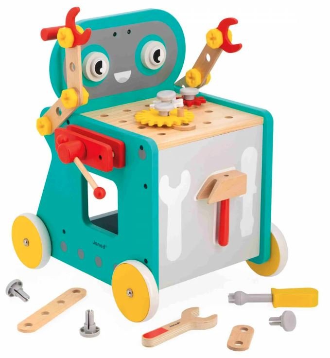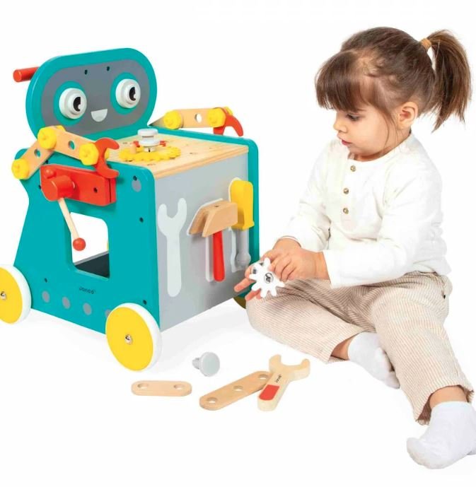 Le Chariot Robot Brico'Kids est bien plus qu’un simple jouet : c’est une aventure bricolage complète pour les tout-petits dès 18 mois ! Ce chariot d’activités en forme de robot stimule la créativité, la motricité fine et l’imagination des enfants grâce à ses nombreuses fonctionnalités ludiques.