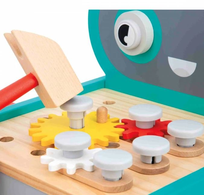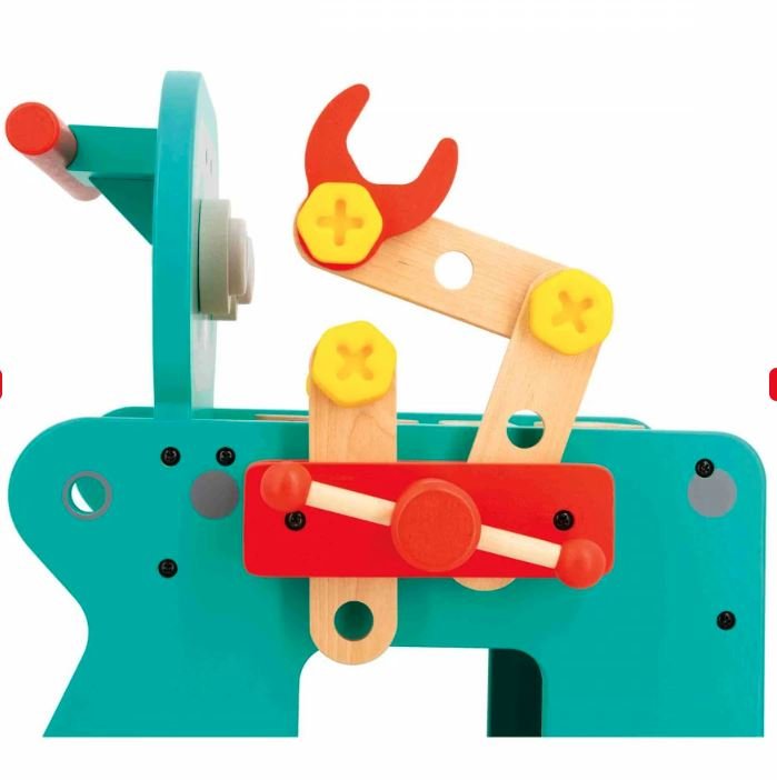 Avec ses 38 accessoires colorés, dont des plaquettes, engrenages en bois et des vis et écrous en plastique ultra réalistes, ce jouet d’éveil est une initiation idéale au bricolage. Les vis à crans ajoutent une touche de réalisme qui captive les tout-petits. De plus, les bras articulés du robot donnent vie au jouet, transformant ce chariot en compagnon de jeu amusant et interactif.