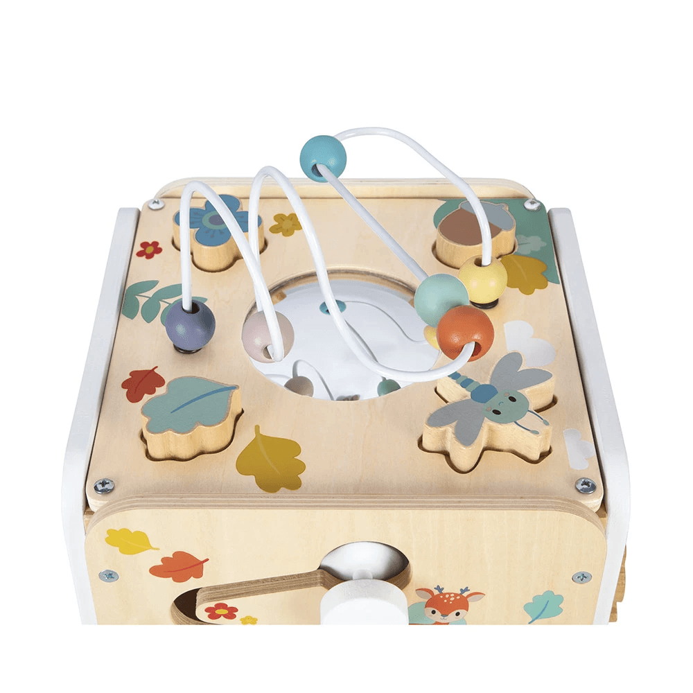 Le Maxi Cube Multi-Activités Pure est un véritable centre d’éveil conçu pour accompagner les tout-petits dès 18 mois dans leurs premières explorations. Avec ses nombreuses faces interactives et son univers graphique inspiré de la nature et de la forêt, ce cube en bois invite les jeunes enfants à manipuler, observer, écouter et expérimenter en toute autonomie. Chaque côté propose une activité différente, transformant ce jouet en un espace de découverte riche et stimulant pour les bébés et jeunes enfants.