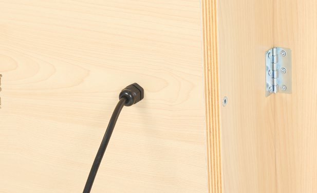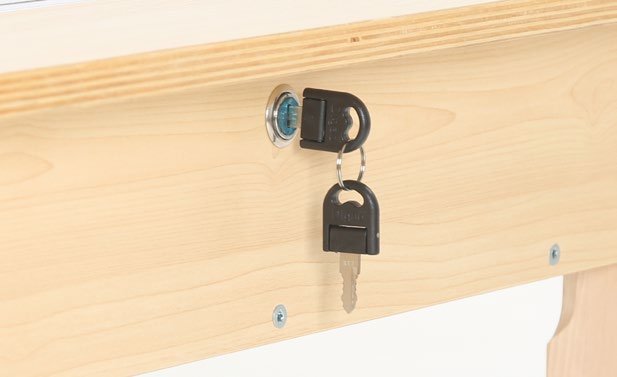 Matériaux : Bouleau massif, contreplaqué, placage mélaminé-érable, plastique, acrylique