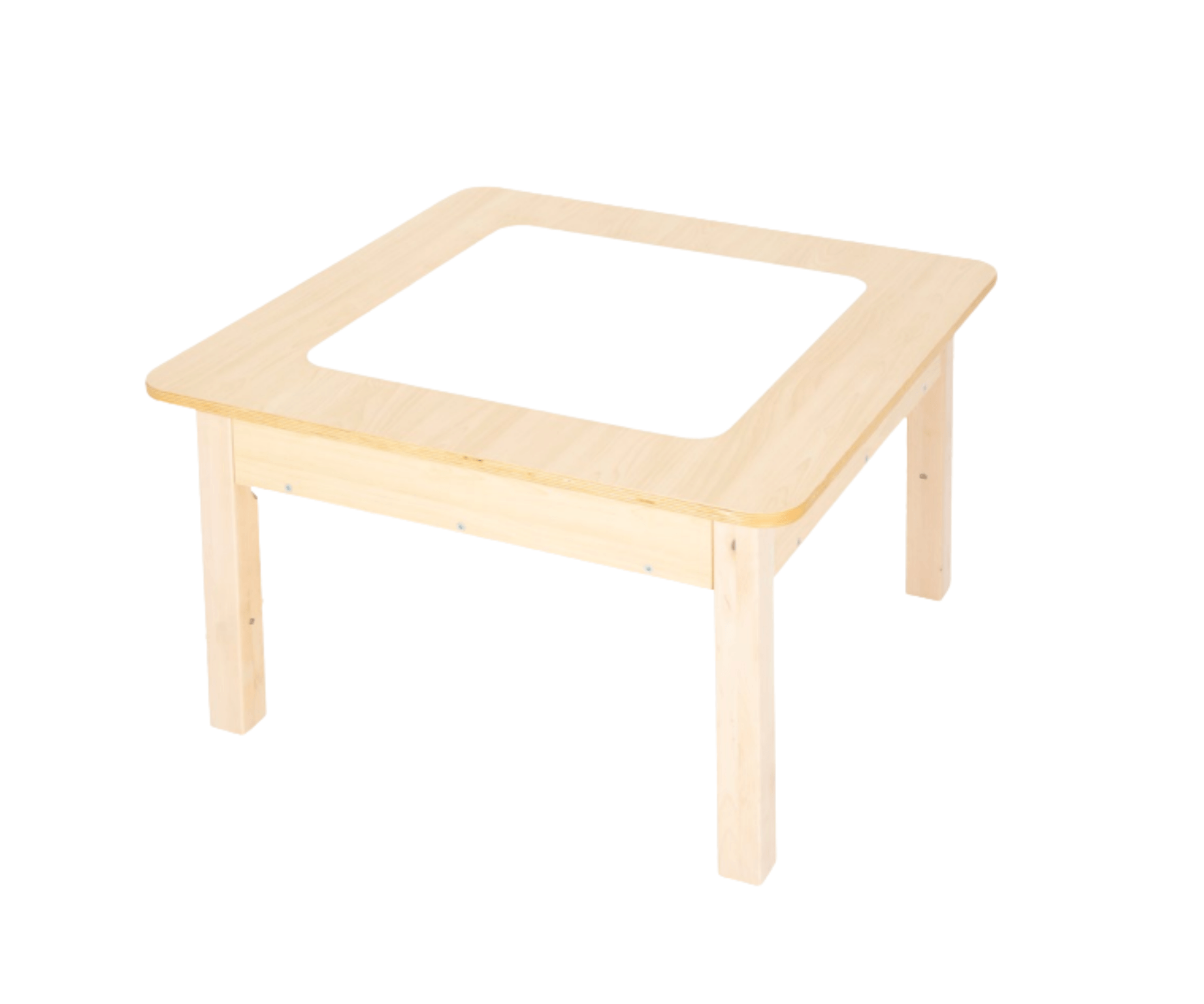 Conçue pour une utilisation en collectivité, cette table robuste et stable est fabriquée en bouleau massif et contreplaqué, avec un placage mélaminé érable pour une résistance optimale aux manipulations quotidiennes. Son plateau en acrylique translucide diffuse une lumière douce et homogène, idéale pour les activités d'exploration sensorielle, les ateliers artistiques ou les jeux d'observation.