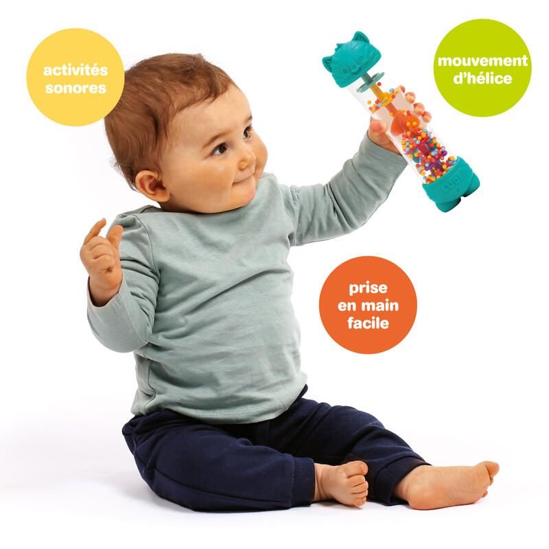 Pensé pour éveiller en douceur les sens des tout-petits, le bâton de pluie Tigre allie jeu sonore, stimulation visuelle et découverte tactile. À la fois ludique et rassurant, il accompagne les bébés dès 6 mois dans leurs premiers moments d’exploration sensorielle. Grâce à son tube transparent, les jeunes enfants observent avec fascination la descente des billes colorées, tandis que le bruit doux de pluie favorise l’apaisement et la concentration.