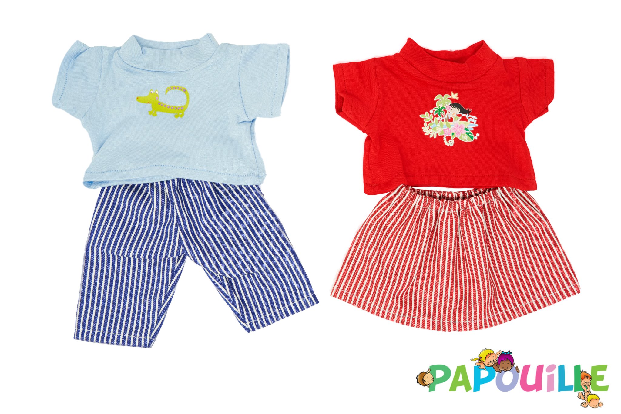 jupe rayée rouge et T.shirt 30cm