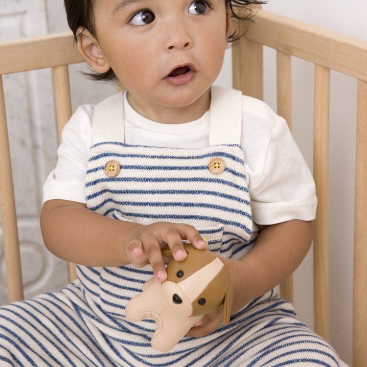 Ce hochet petit chien est adorable, grâce à sa texture souple et douce, muni d’un grelot rigolo à l’intérieur.