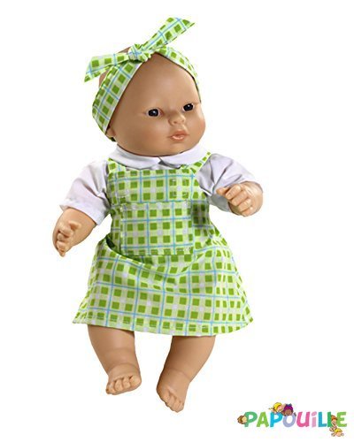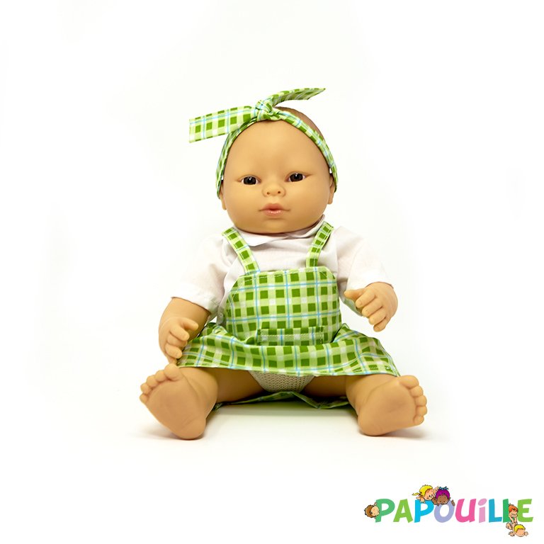 Poupée corps dur sans cheveux 30cm créole robe verte