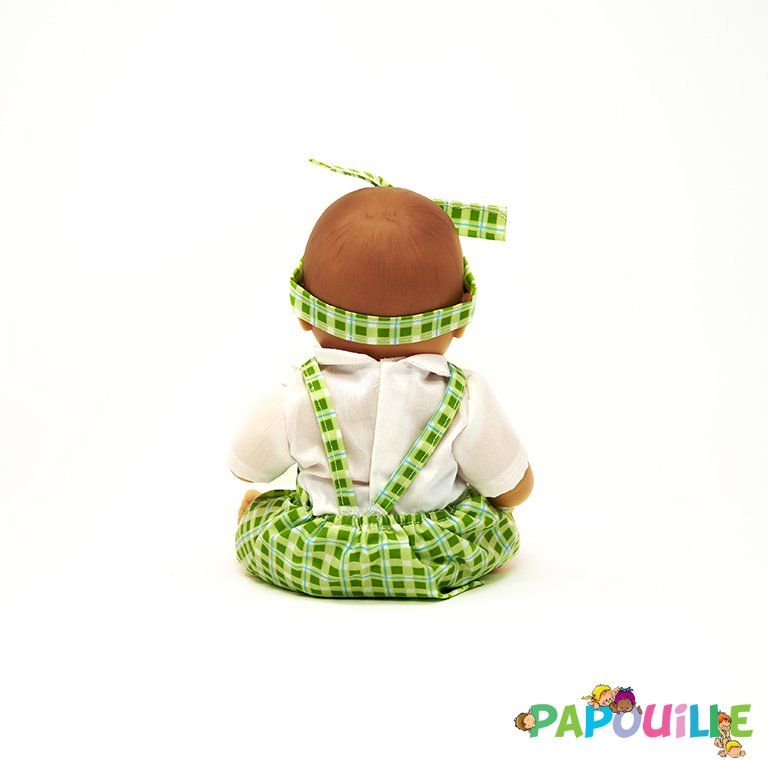 - Poupée corps dur sans cheveux 30cm créole robe verte