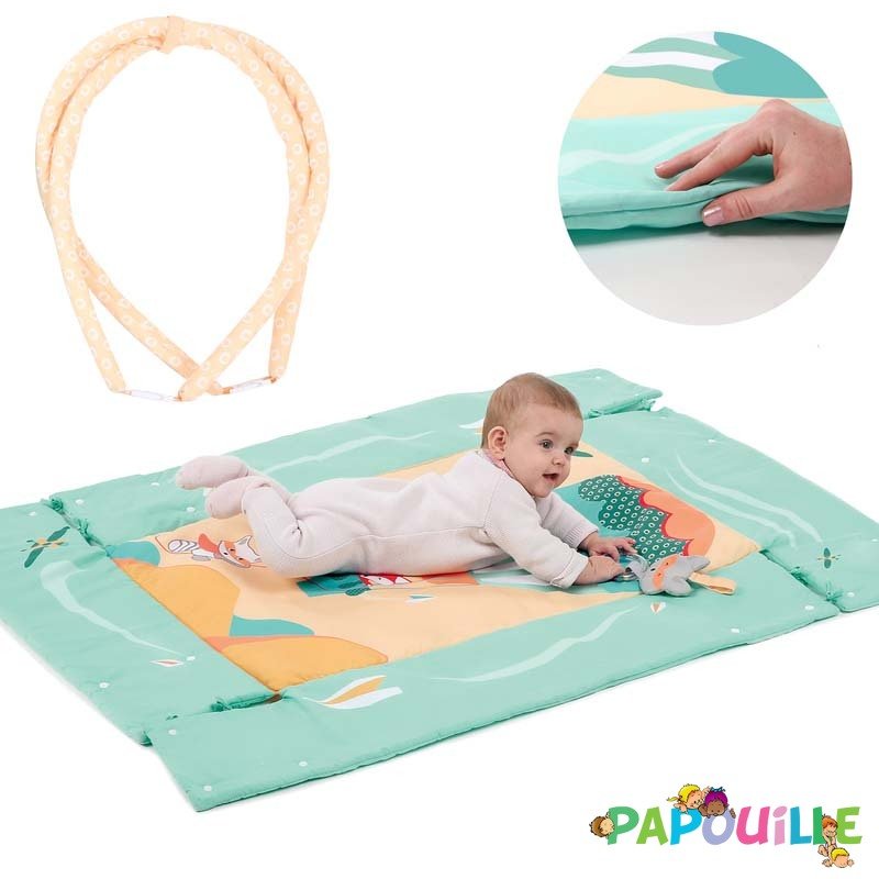 - Tout moelleux et tout doux, le tapis d'éveil permet à bébé de s'amuser et de se reposer confortablement installé, sous le regard de ses parents.