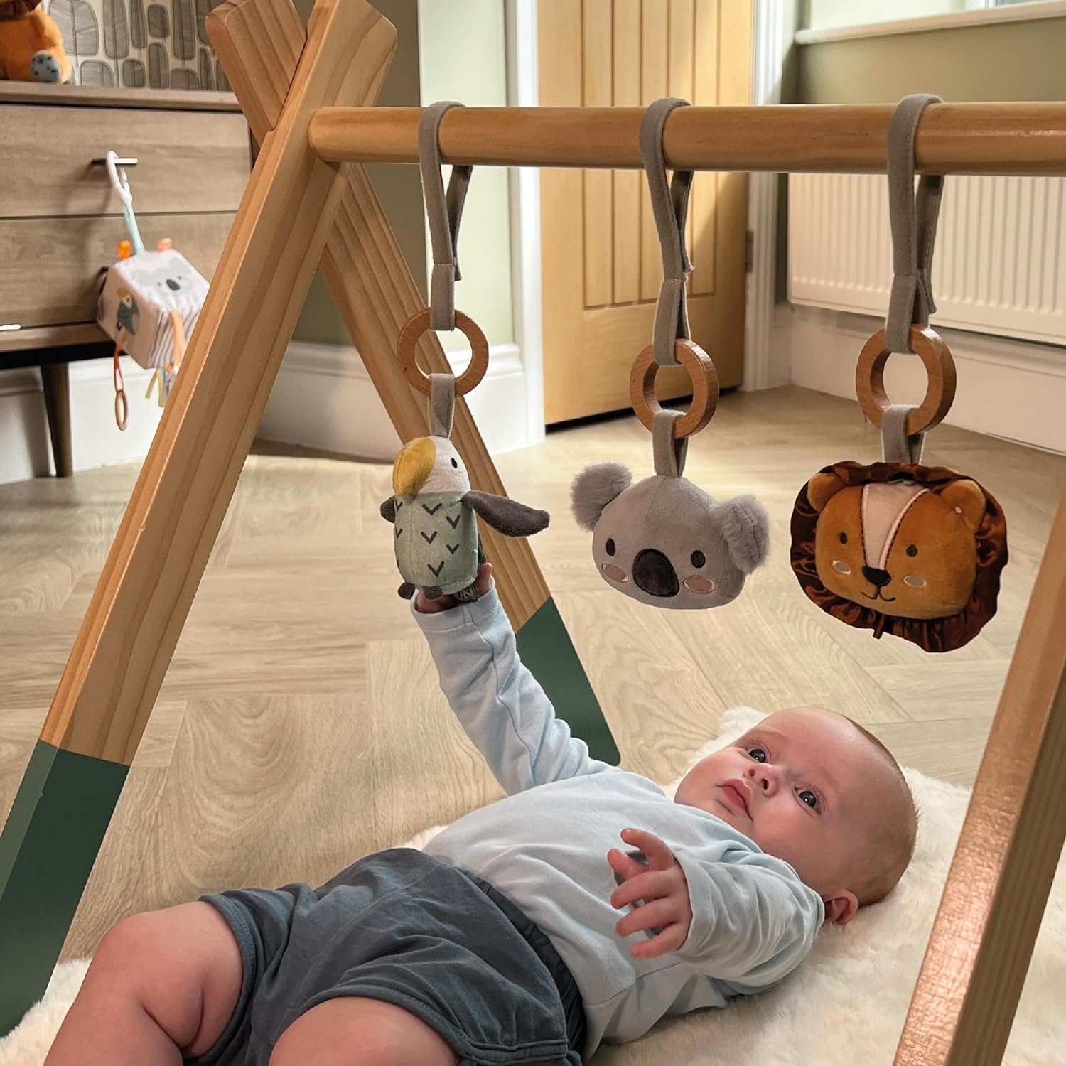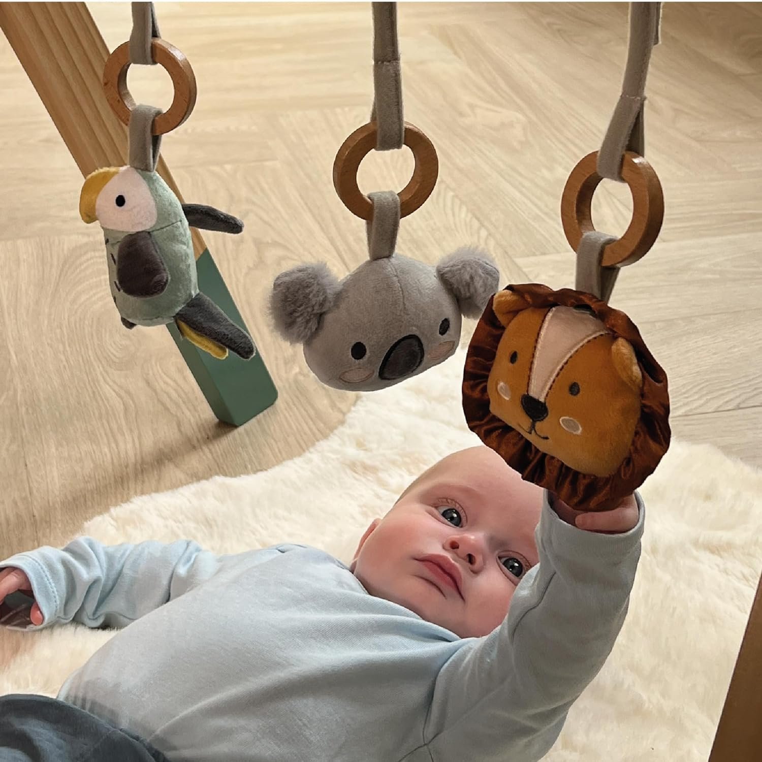 Le portique Animal Adventures Gym de Jeu en Bois pour Bébé avec Jouets Sensoriels