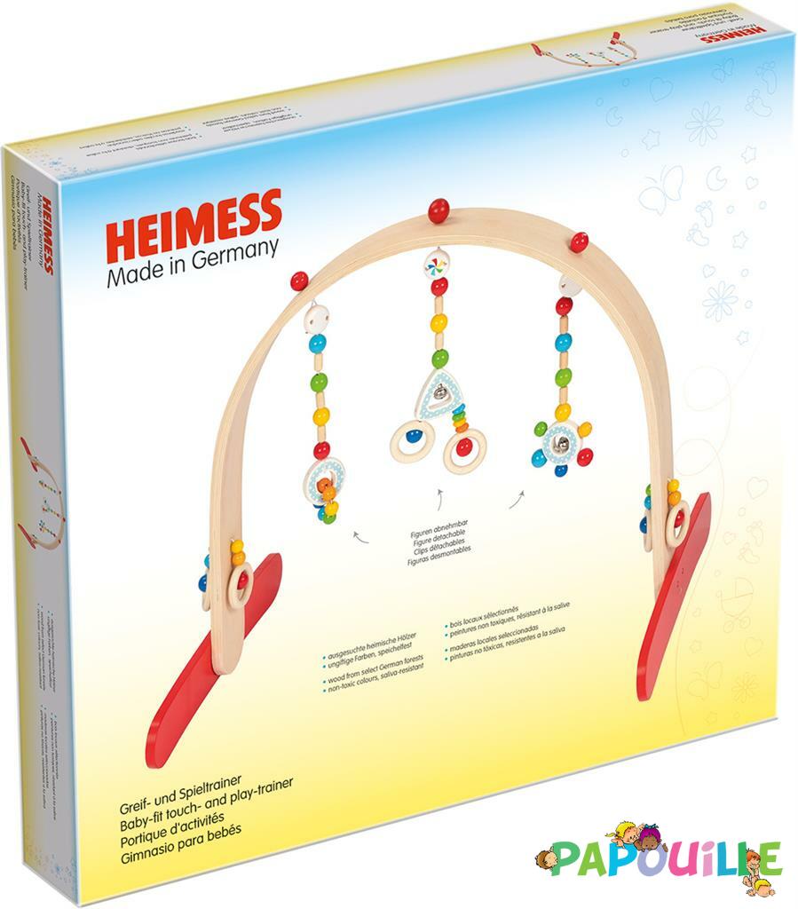 Le portique d'activités en bois pour enfant confetti de la marque Heimess a été conçu pour développer les capacités motrices des enfants en bas âges.