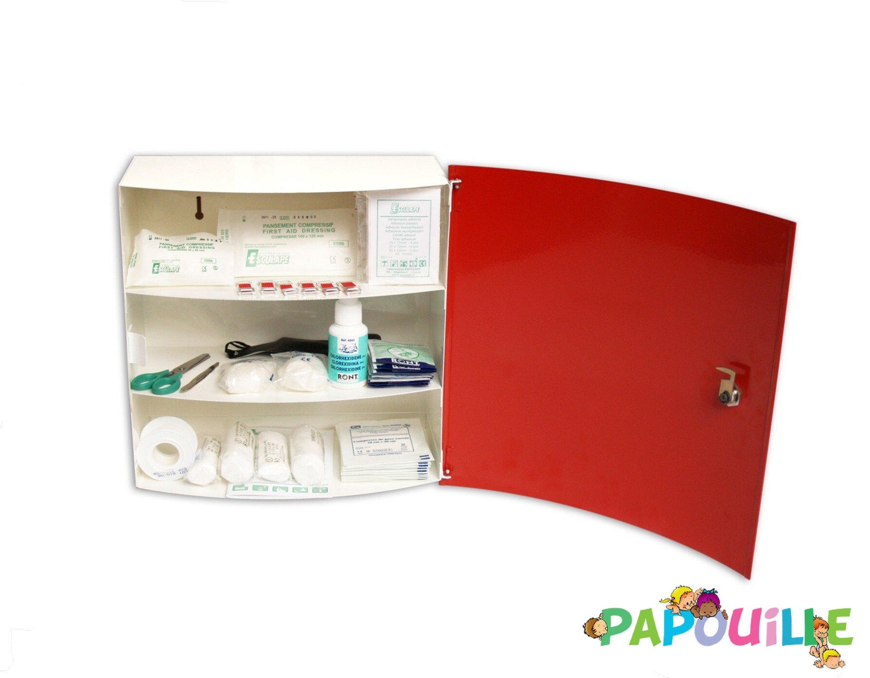 L'armoire à pharmacie en métal, conçue pour 8 à 10 personnes, est un incontournable pour les crèches, micro-crèches, écoles et collectivités. Compacte et robuste, elle assure un stockage optimal de tous les produits nécessaires aux premiers secours pour soigner les petits bobos du quotidien et répondre aux éventuelles urgences. Avec un design fonctionnel et un intérieur compartimenté, cette armoire permet un accès rapide aux produits, réduisant le temps d’intervention pour soigner les égratignures, coupures ou autres blessures fréquentes chez les jeunes enfants.