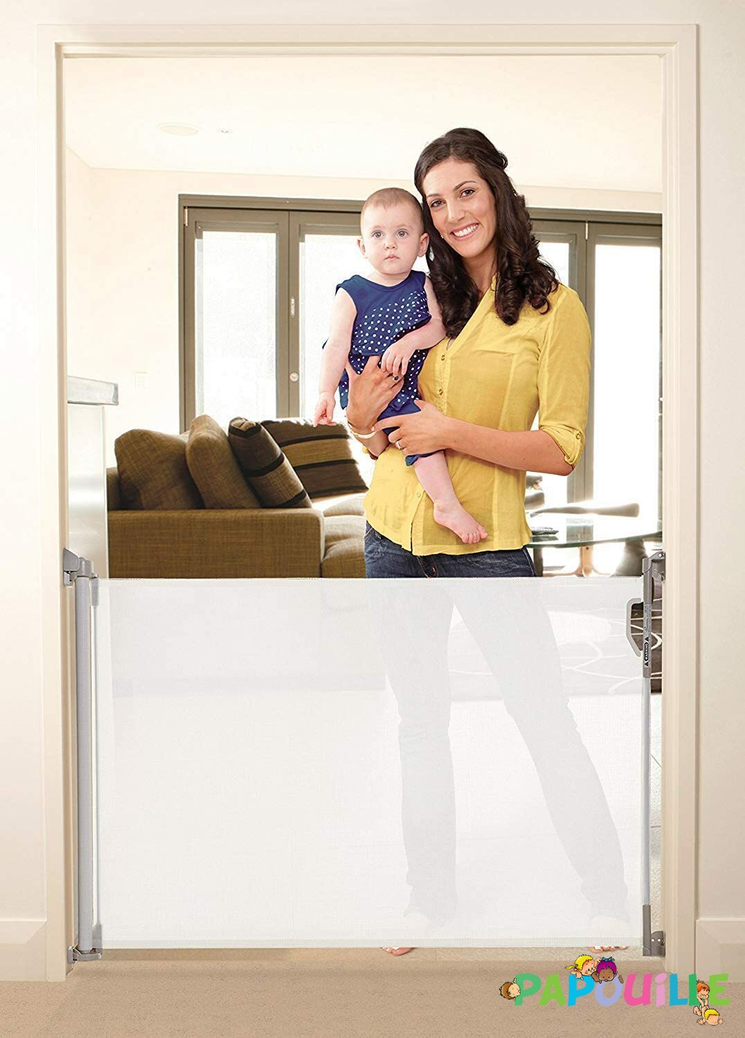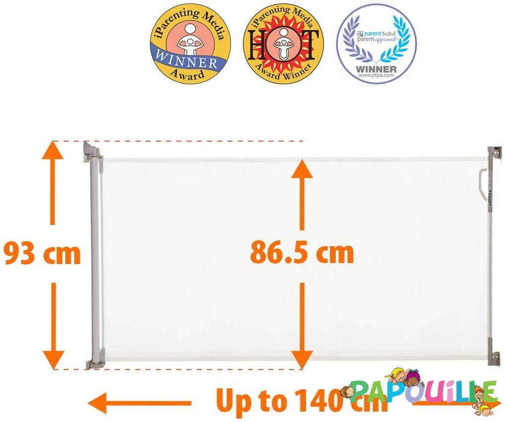 La Barrière de Sécurité rétractable polyvalente s'adapte aux espaces jusqu'à 140 cm de large.