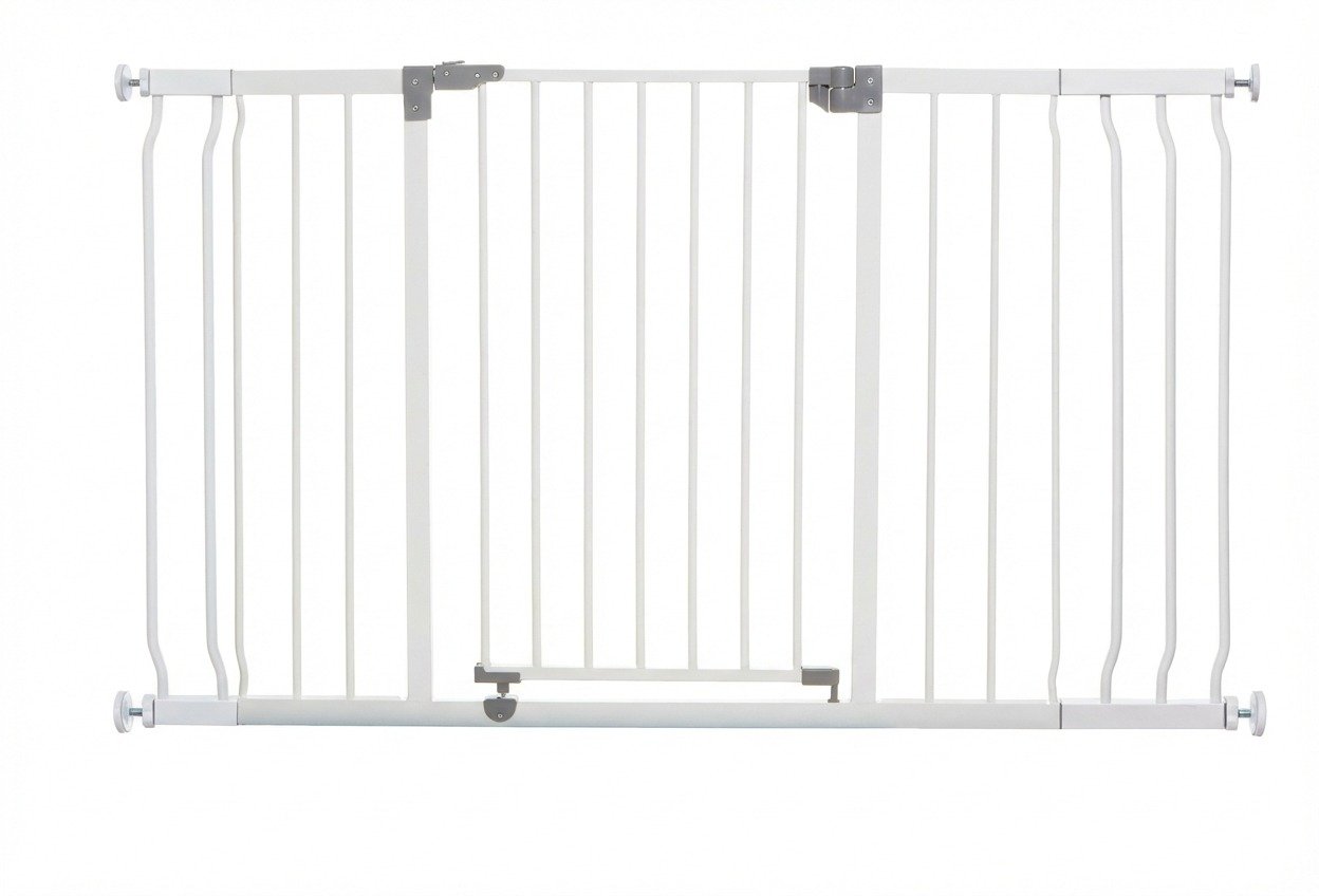 Ajustement personnalisé : Il peut accueillir des ouvertures de 99 à 105,5 cm de large avec le portail seul, de 108 à 114,5 cm avec l’extension de 9 cm et de 117 à 123,5 cm avec l’extension de 18 cm. Alternativement 126-132,5 cm avec les deux extensions