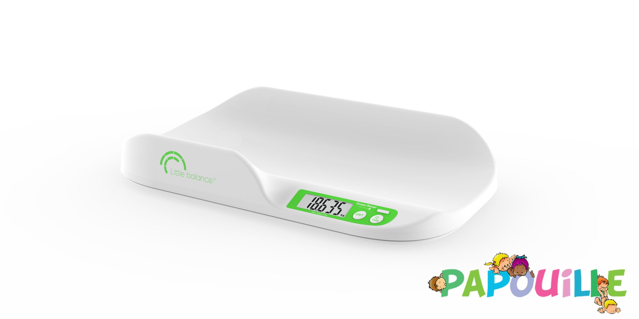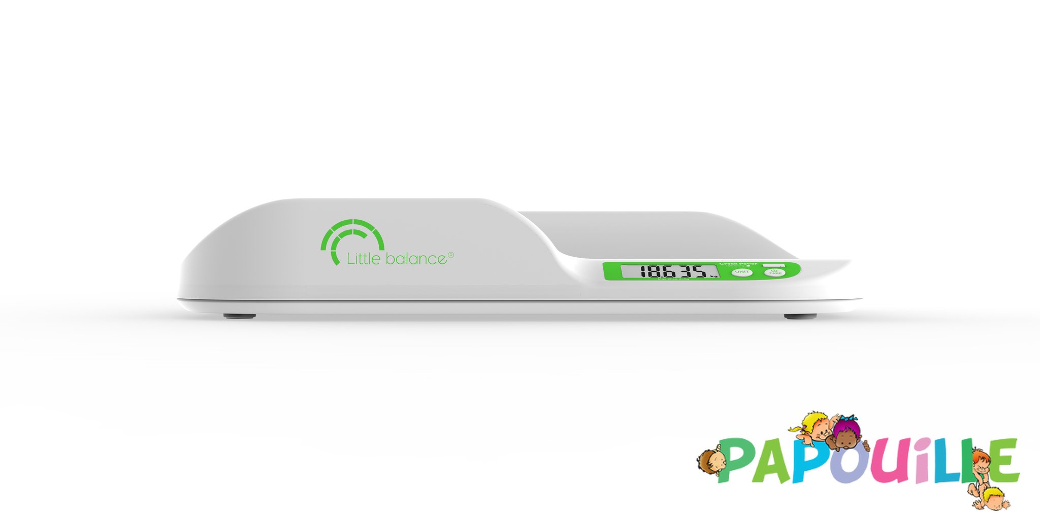 Papouille vous présente le pèse bébé anti-chutes et sans piles (Batterie rechargeable)