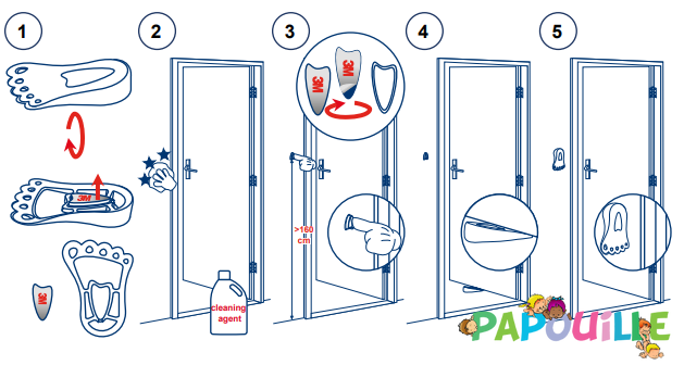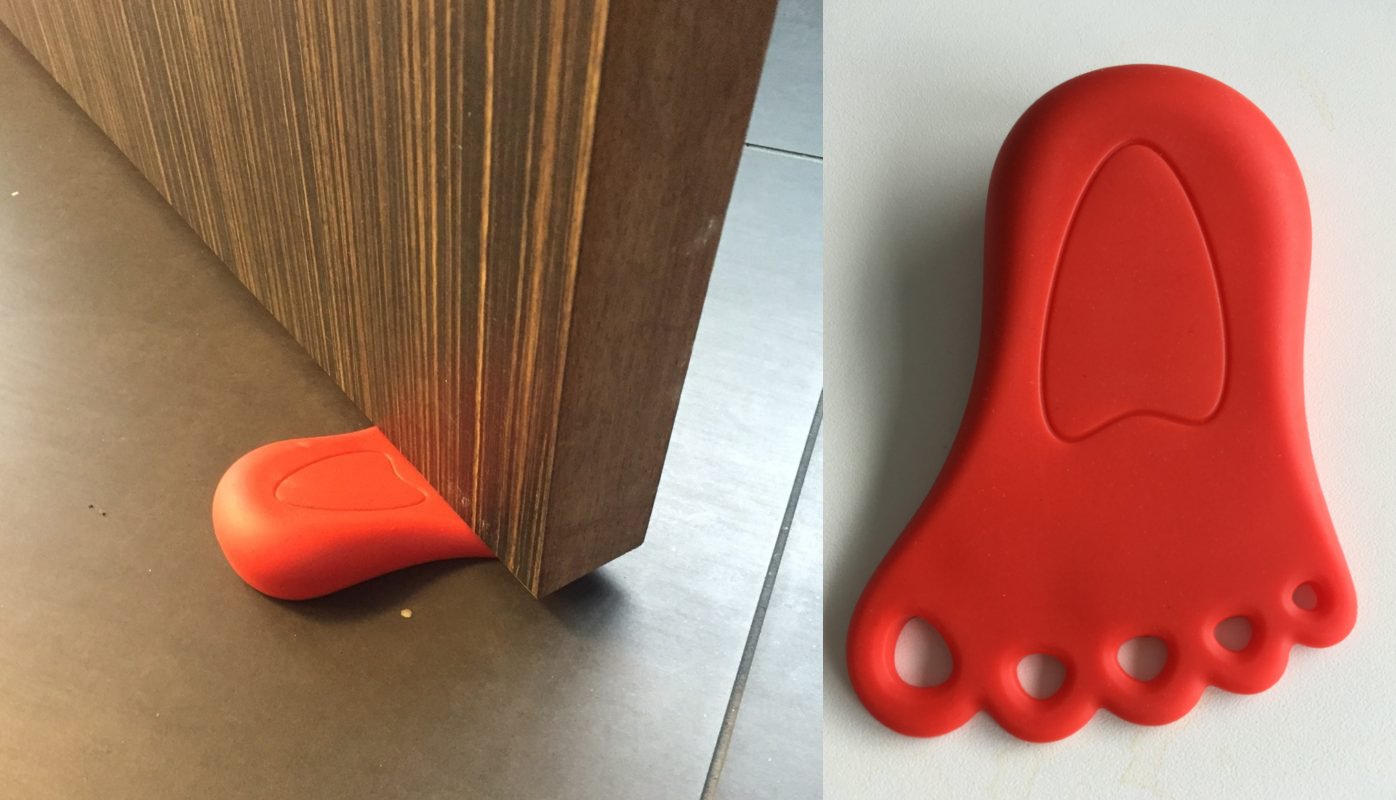 Le Bloque Porte pied (Finger Alerte) empêche la porte de claquer et évite des blessures sérieuses et douloureuses des doigts aux enfants.