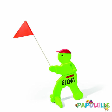 Le design de Safety sam est facilement identifiable par sa couleur et son drapeau.