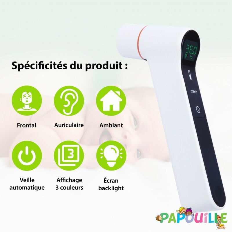 - Permet la mesure auriculaire et frontal sans contact