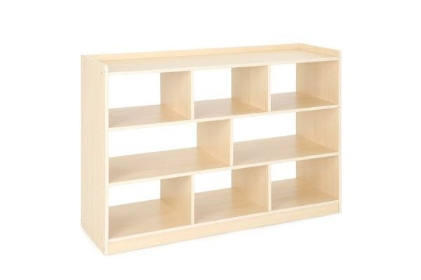 - Étagères fixes et compartiments : Deux étagères fixes avec 8 compartiments offrent une organisation claire et accessible pour ranger des jouets, des livres et d'autres ressources pédagogiques, facilitant l'accès et l'autonomie des enfants