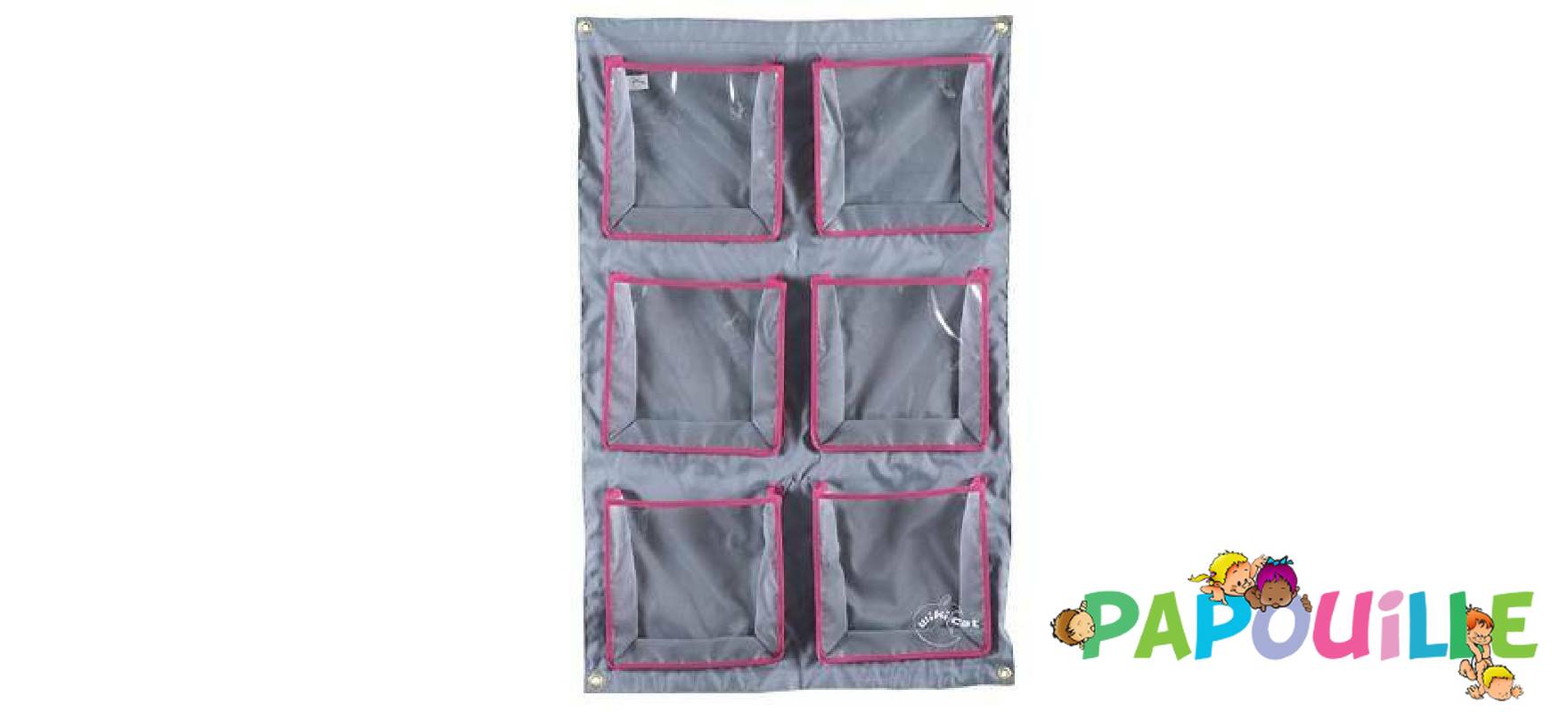 lot de 2 range doudou 6 pochettes - gris et fuchsia