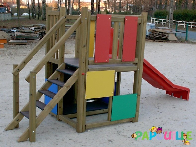 Grâce à cette construction extérieure les enfants pourront grimper puis glisser en développent leur motricité. La cachette secrète est idéale pour laisser libre cours à leur imagination et leur créativité.