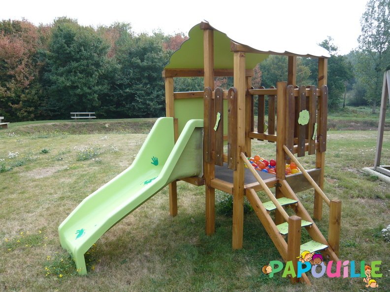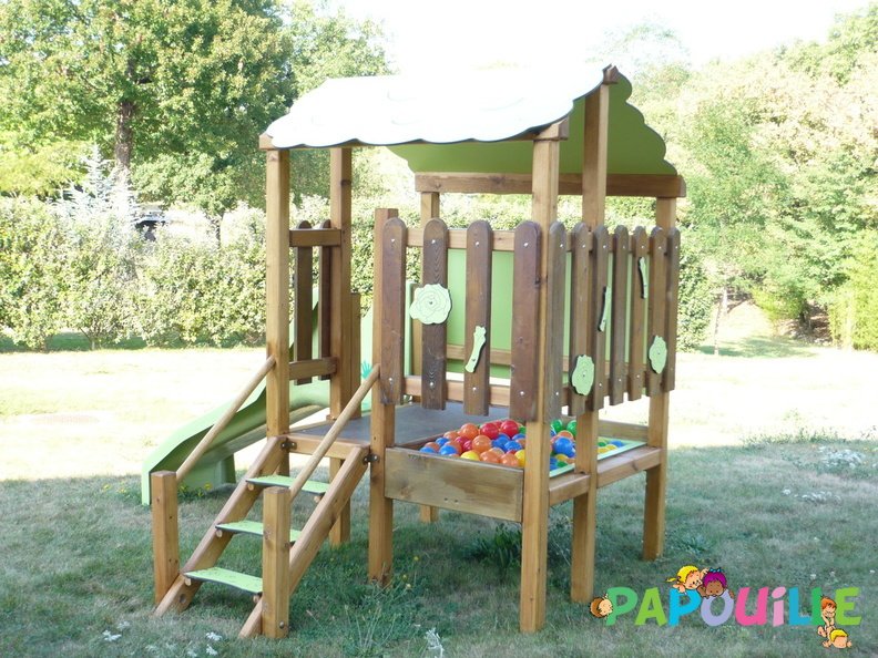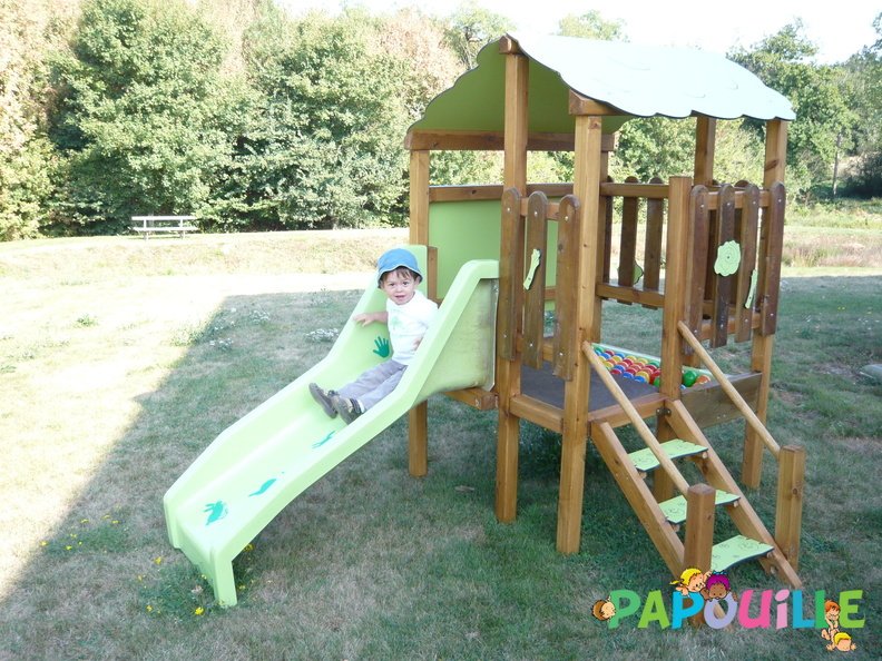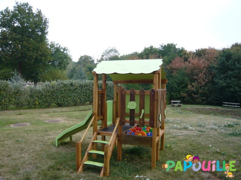 L'aire de jeux baby toboggan est un module de jeux complet avec son escalier, son bac à boules et toboggan.