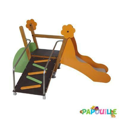 Composé : d'un escalier, d'un toboggan et d'une rampe d'accès il permet à l'enfant de développer leur motricité en faisant appel à leurs appuis.