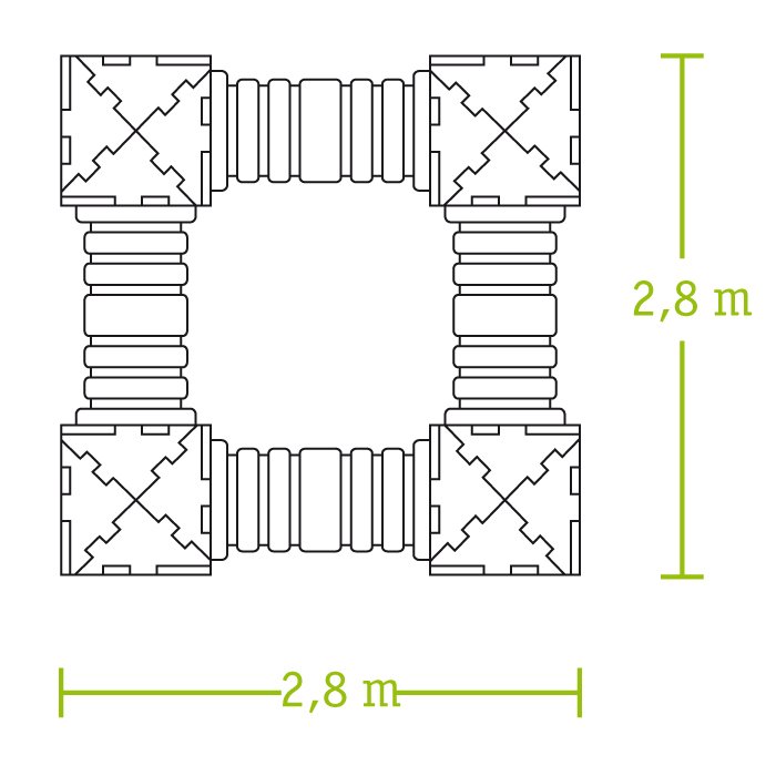 Ce design unique, composé de quatre branches avec des tunnels, crée un espace d’exploration fascinant. Que ce soit dans une école, une crèche ou un parc, cet espace ludique transforme l’environnement en un labyrinthe d’aventures.