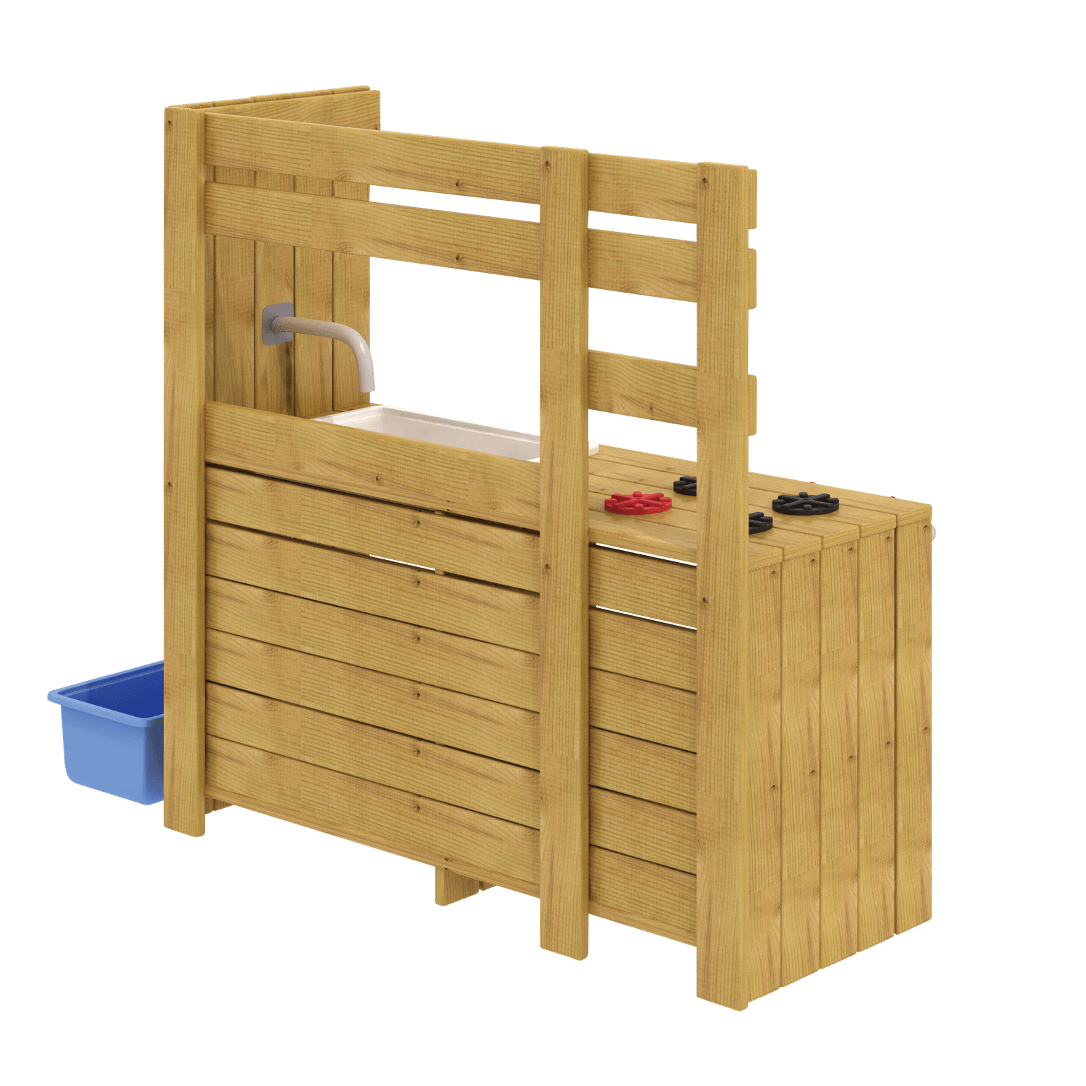 Cette cuisine est fabriquée en bois de pin imprégné en autoclave, avec une double lasure naturelle à base d’huile dure, garantissant une excellente résistance aux intempéries et une longévité optimale. Elle dispose également de nombreux espaces de rangement, parfaits pour stocker les accessoires et ustensiles de jeu.