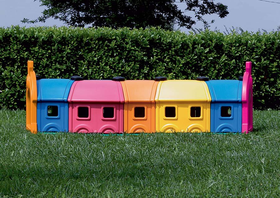 Le Wagon Toy est une structure de jeux extérieure composée de 5 wagons colorés, spécialement conçue pour les tout-petits de 1 à 3 ans. Avec ses teintes vives – bleu, vert, orange et rose – elle attire immédiatement l’attention des jeunes enfants et dynamise les espaces extérieurs des crèches, micro-crèches, haltes-garderies ou écoles maternelles.