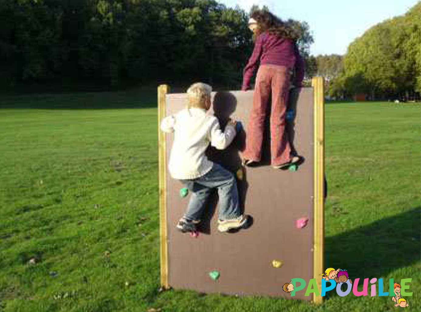 Le panneau d'escalade a une face permet aux enfants de 5 à 10 ans de s'exercer à grimper pour plus tard franchir des glaciers :)