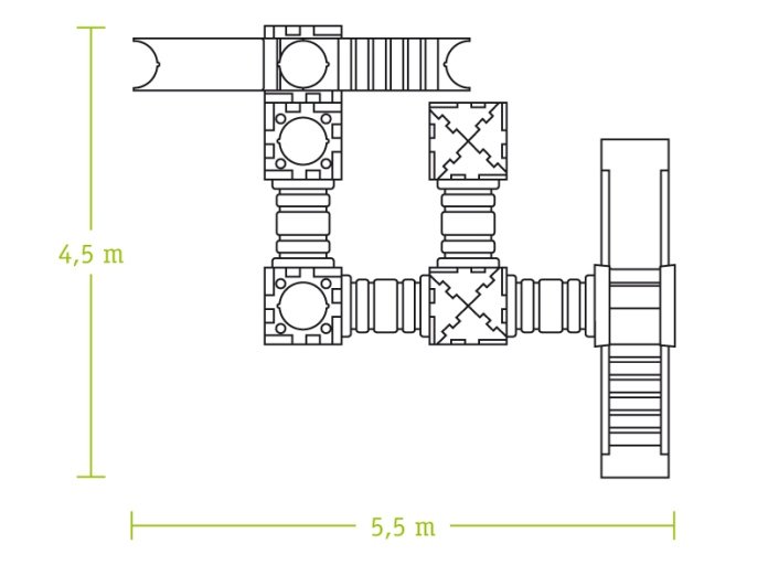 Caractéristiques du parcours de jeux cubique avec toboggans :