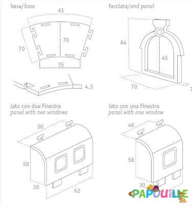 - Détails composition : 3 wagons (3 côtés avec 1 fenêtre, 3 côtés avec 2 fenêtres et 3 bases) et 2 côtés.