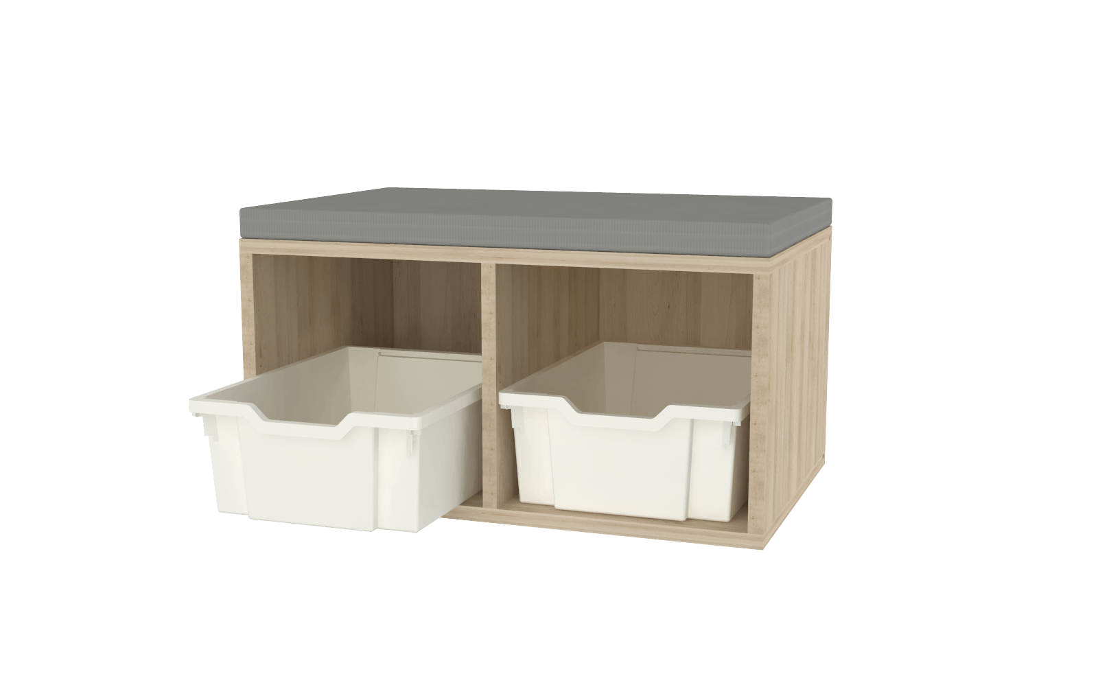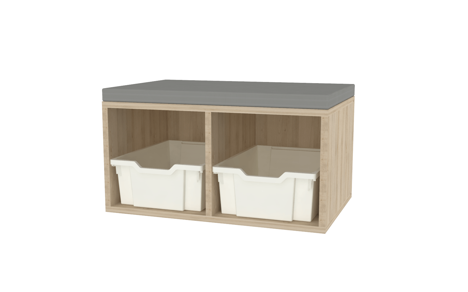 Son bac de rangement en polypropylène blanc diffusant, parfaitement intégré sous l'assise, permet de stocker chaussures, accessoires ou petits objets, garantissant ainsi un espace toujours ordonné. Ce banc est conçu pour être facilement nettoyable et résistant aux produits d’entretien, assurant une hygiène impeccable au sein des structures d’accueil.